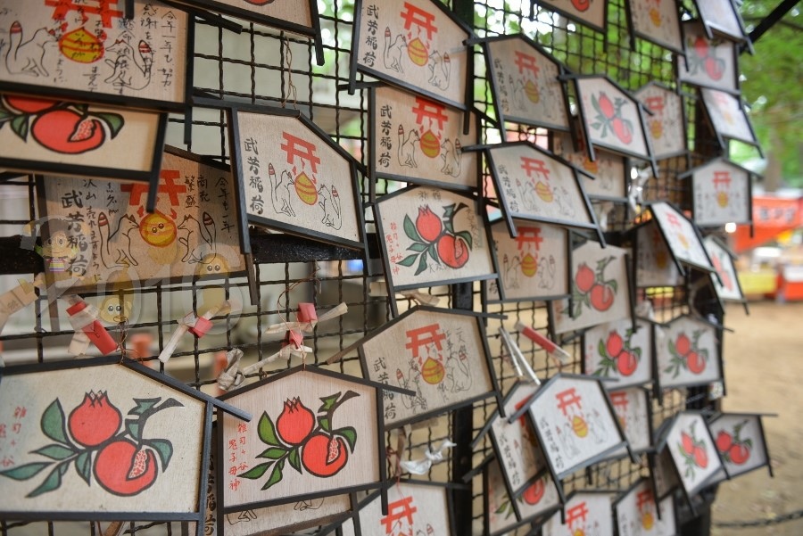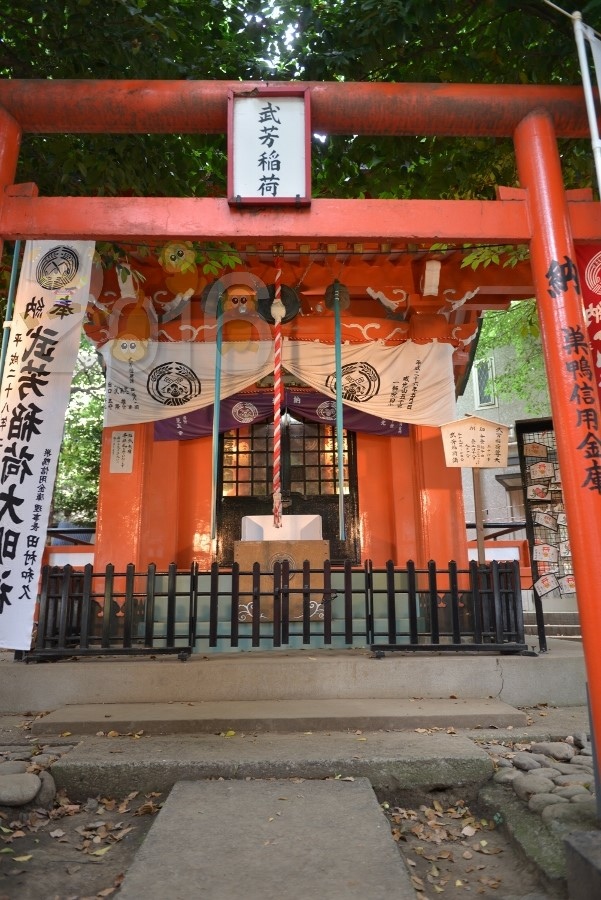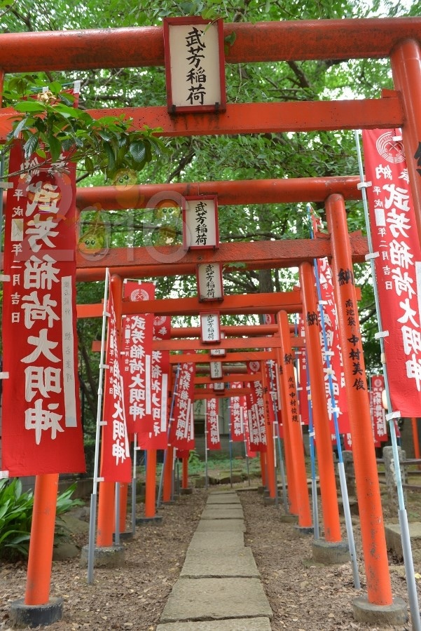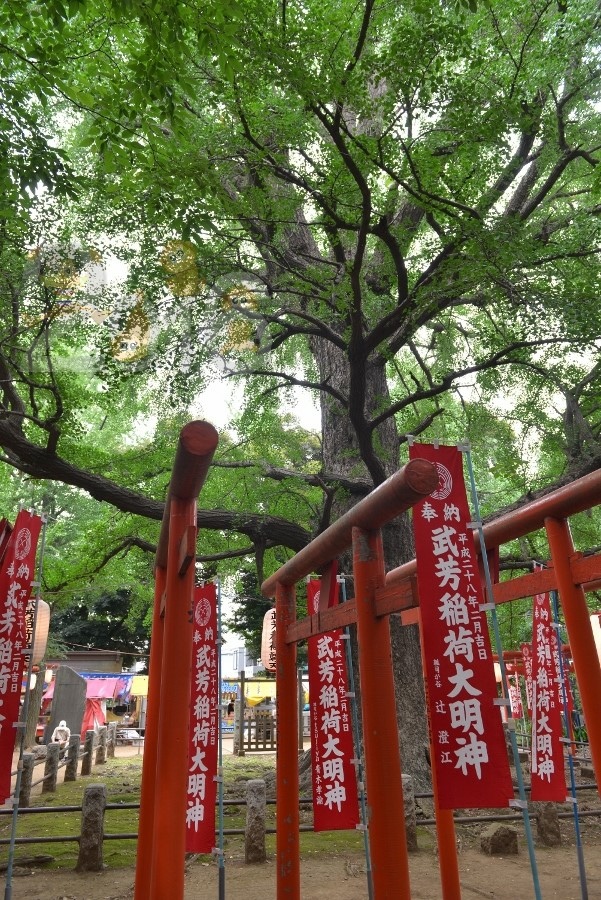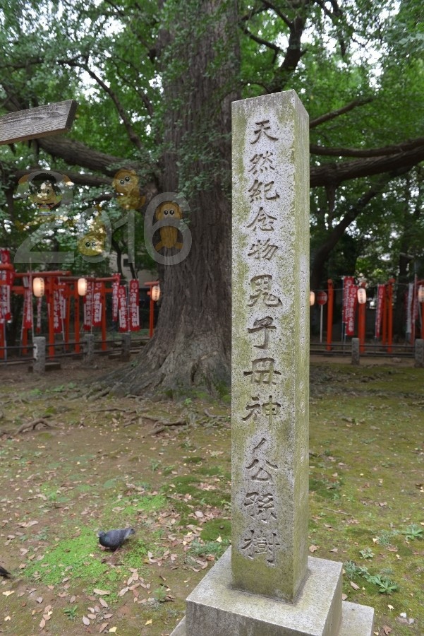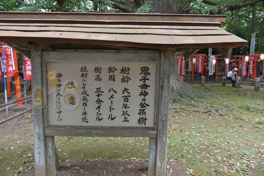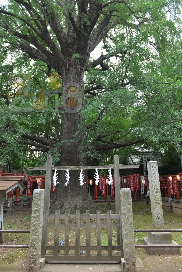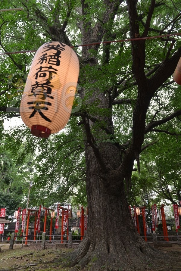 穿越街道,鬼子母廟就在接到深處,旁邊有稻荷神社...在日本,只要供奉稻荷神之處,似乎都有公司行號、店家捐獻紅色鳥居在參拜道上形成特殊的景觀,發財似乎是普世的願望。紅色鳥居圍繞的巨大的銀杏樹,相傳樹齡高達600年,是鬼子母廟中指定的天然紀念物。