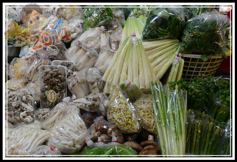 傳統市場裡臥虎藏龍,雖然類似的攤商會歸在一隅,不過總有些店東會有巧思與人不同。這家蔬菜攤,兩老夫妻經營,蔬果潔潔淨淨且都用塑膠袋捆紮,著實特殊。喜歡的挑一挑,享受到傳統市場的樂趣又兼顧超級市場的清爽。