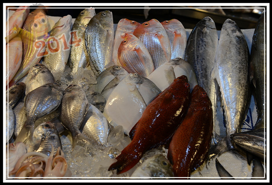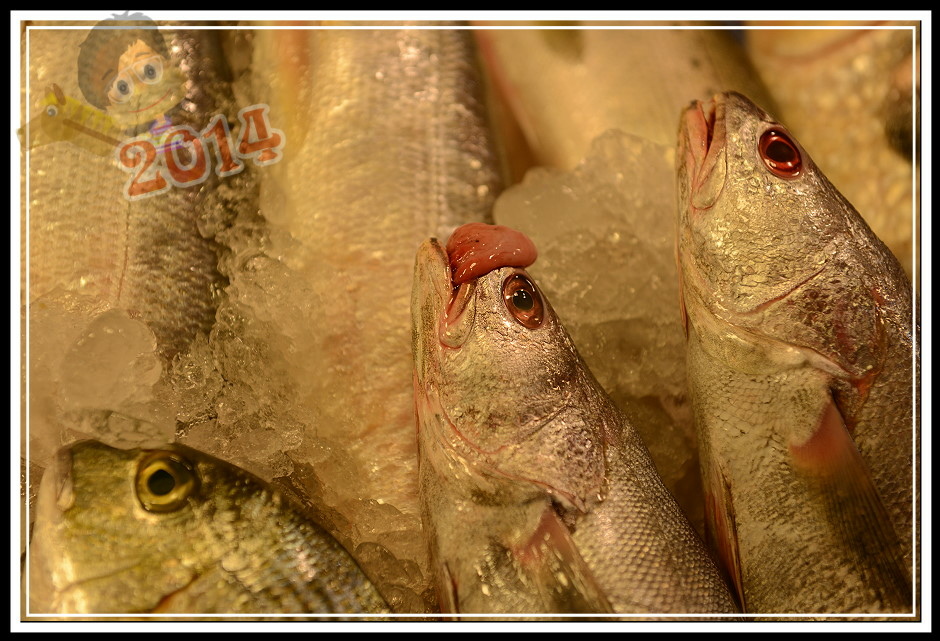 新鮮的漁獲擺在攤上,其實還可以看見魚身上美麗的條紋;以前瘋著養淡水魚,就記得山鰱仔身上的黑縱線,如果被驚嚇或死亡之後就會變淡甚至消失;當牠愉快地優游,遠遠地就可以藉由黑粽餡分辨出牠來。