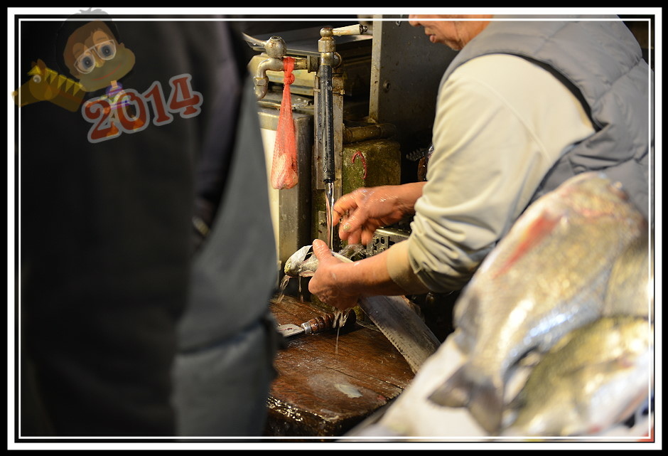 挑中了魚,老闆還仔細地處理魚鱗、內臟,在天冷的隆冬特別感受到老闆的誠意,除了他所敘述而我們從來無從查證的說法。