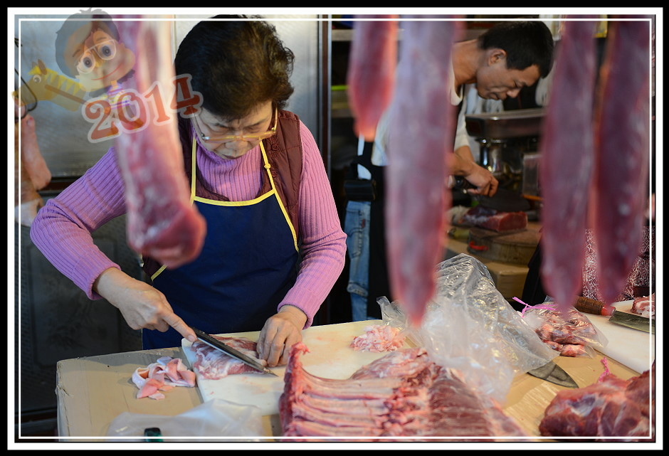 買肉的豬肉攤則是一家人,只是我還不夠熟,分辨不出年輕的老闆娘是媳婦?或是女兒?