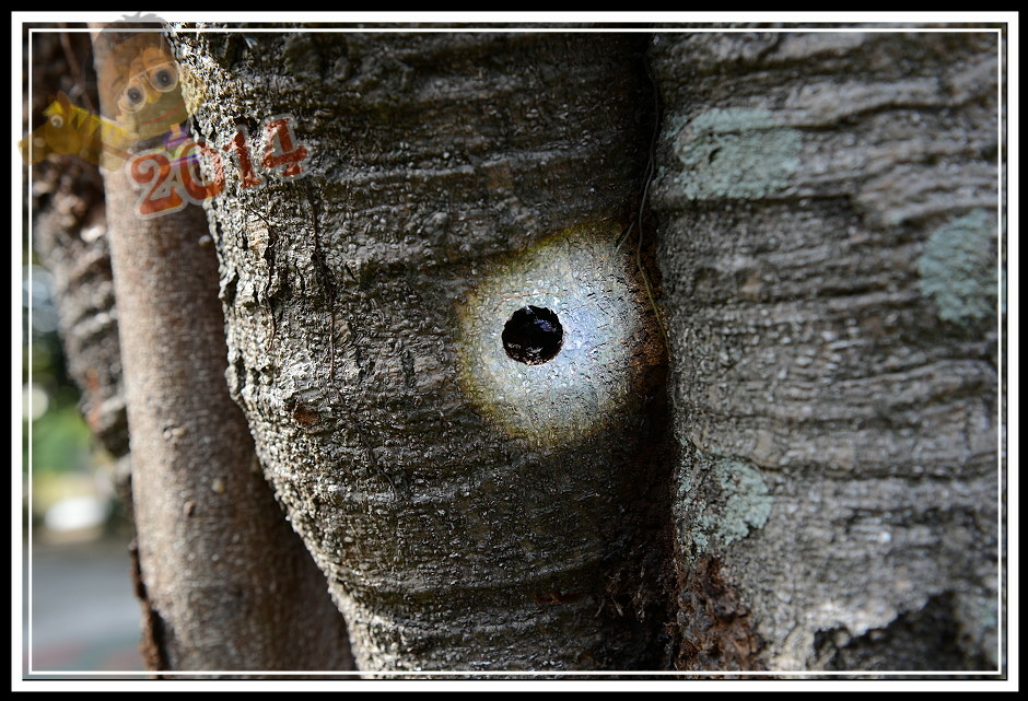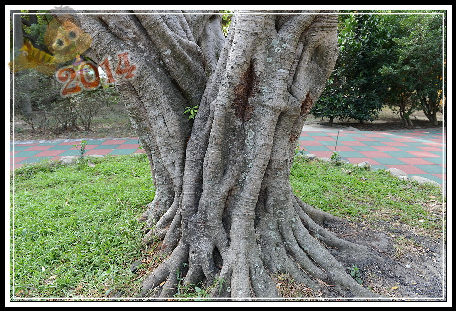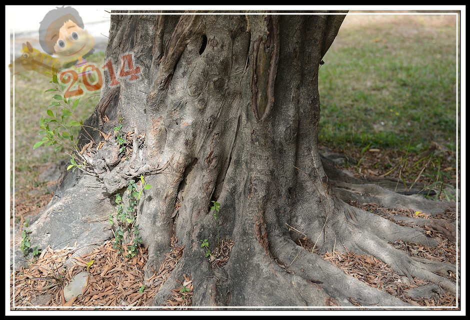 今年初,卻又發現被社區視為精神象徵的大榕樹也染病了...,剛開始發現成列的毛毛蟲死在樹幹凹縫裡的異相,接著褐色的菌斑就由土裡沿著株幹上竄,漸漸地大榕樹由蒼翠轉黃,葉子也變得稀疏。看來,回天乏術了...好可惜的一棵大榕樹。