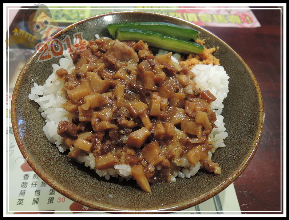 再來的滷肉飯,肉切得四方,沒有多餘的香料,只有肉丁與米飯樸實的美味。原來,滷汁旁擺了兩片橫切的小黃瓜,我覺得應該以縱切的黃瓜條較能搭配,也顯得大方,拍照前就自己替老闆改了擺盤。