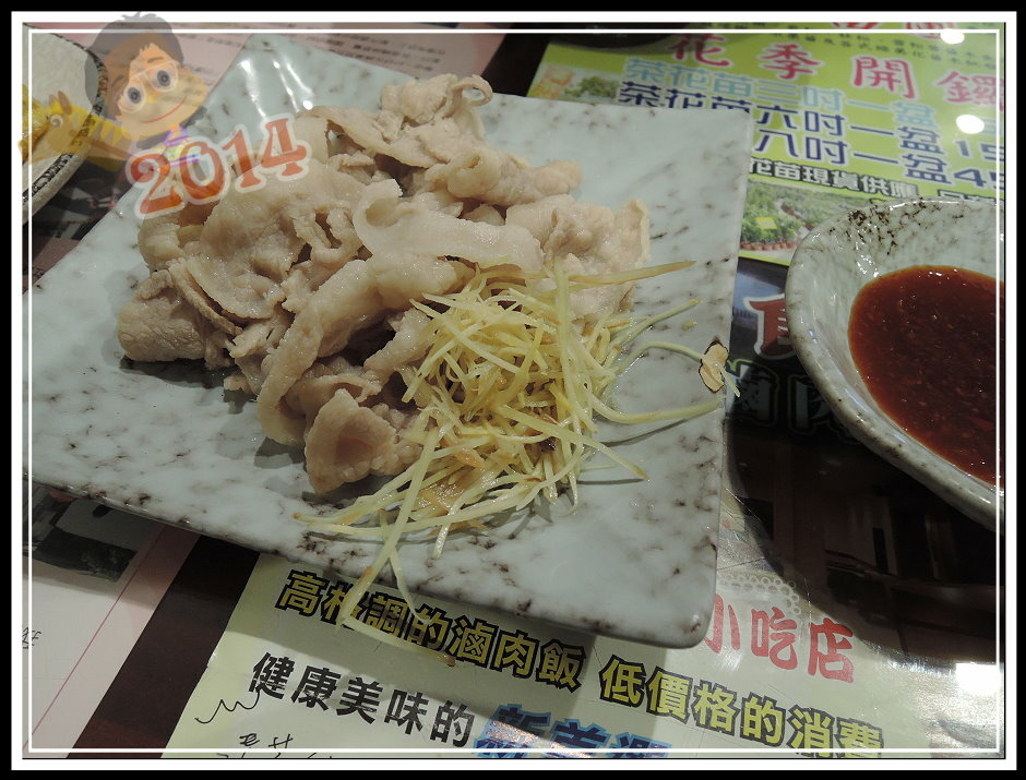 蒜泥白肉則伴著薑絲與沾料,老闆並沒有將醬油淋上肉片,反倒讓客人自己決定是否需要醬料,這是個聰明的作法,吃到末了...我捨棄醬料,就單獨以清淡的肉片配飯,那風味也相當不錯。