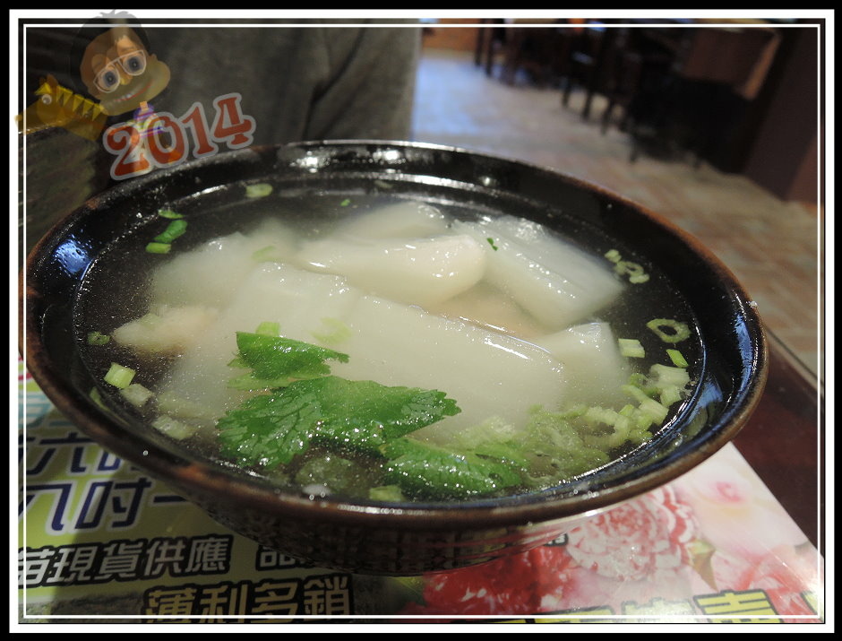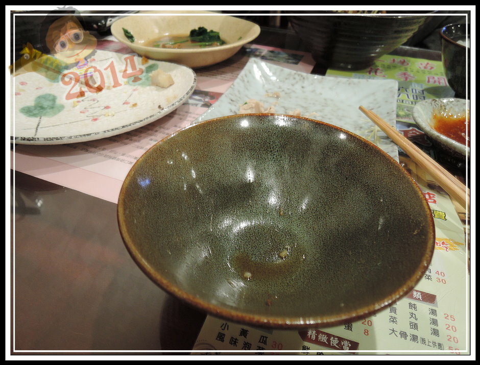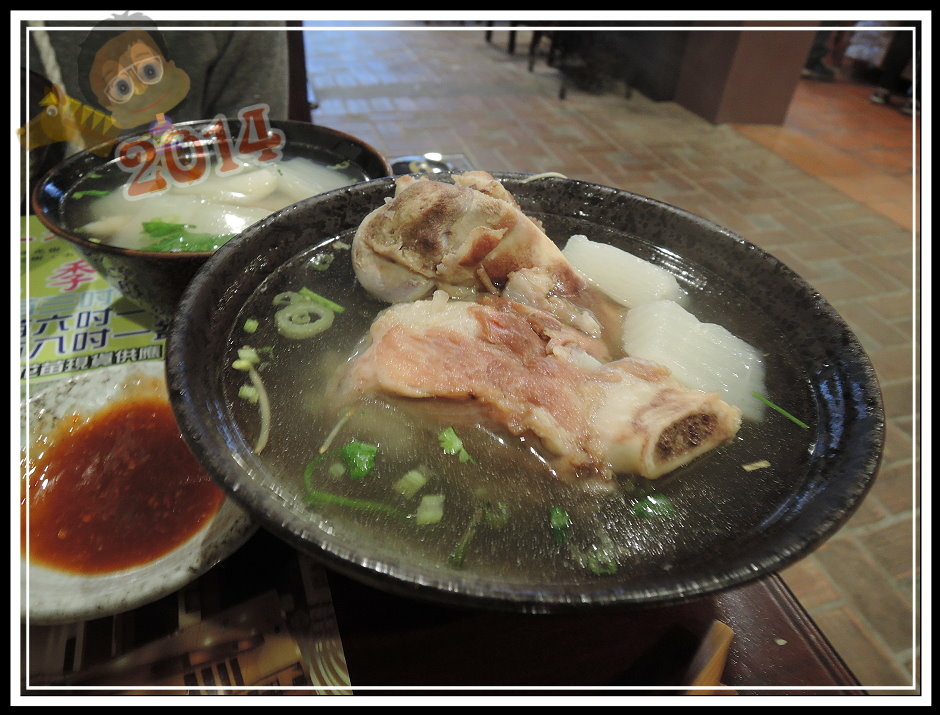 50元的大骨湯就兩塊蘿蔔再加上兩大塊大骨,一樣的鮮美。上桌的時候讓我傻眼了,蘿蔔湯的湯碗就比飯碗大上一半,大骨湯的碗又要加倍...這已經不只是一個人喝的湯量了。