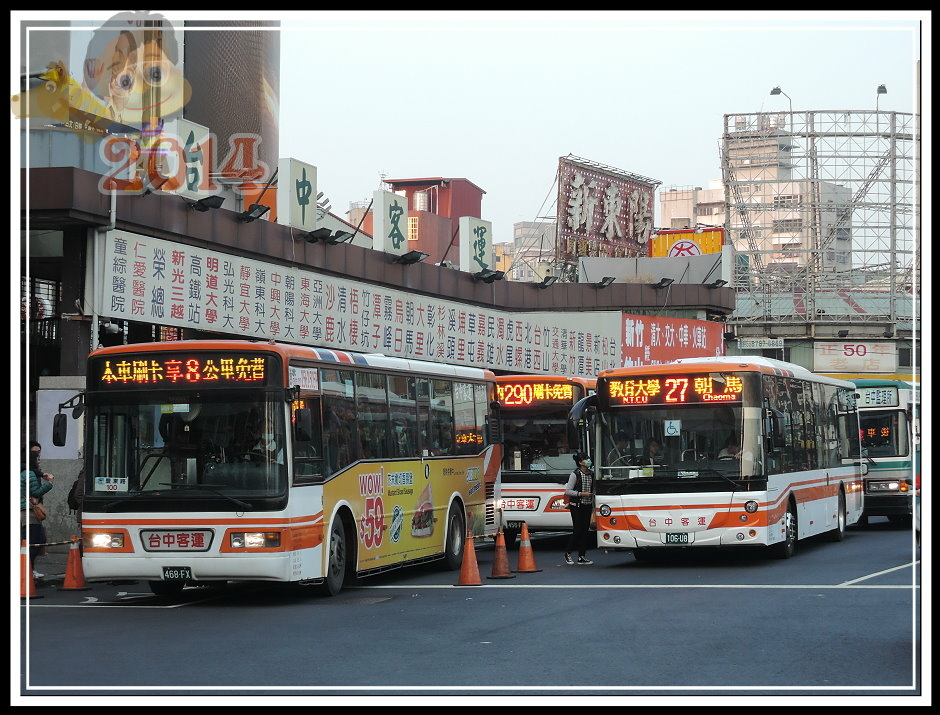回程,站牌就在台中火車站前方...似乎這些聯營公車的停車點還有點不同,豐原客運在下方一點,台中客運則在站前的公車站,雖然他們都掛著同路線的公車號碼。幸好,相去一個路口而已,到不至於形成困擾。
