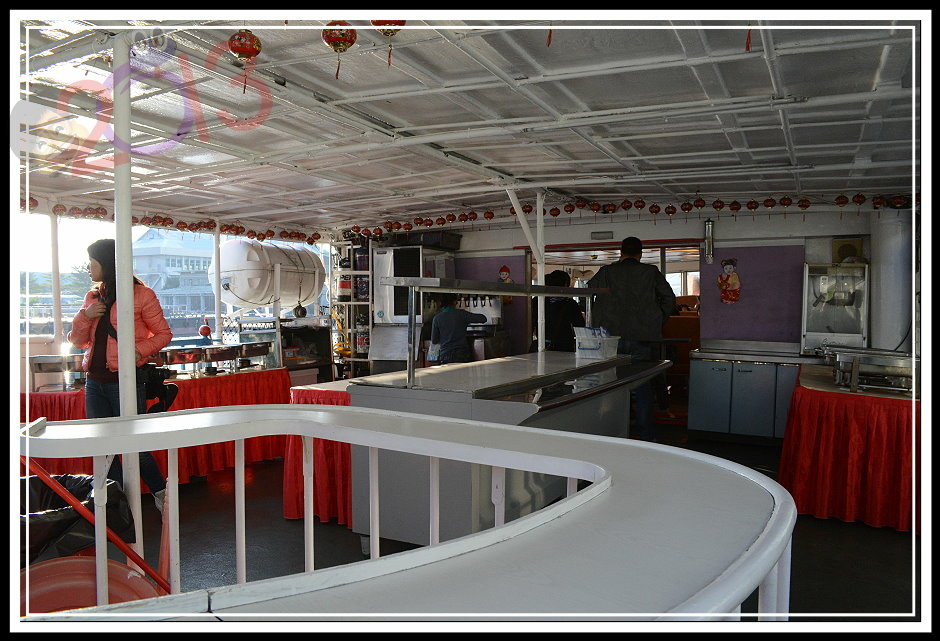 碼頭早已經被準備上船的人群包圍,聽口音...這船開不會要穿過台灣海峽吧?趁著他們的台灣導遊還在吆喝,一個箭步踏上船板,把票塞到看起來像船東的中年男子手裡,立刻上到上層甲板,原來船上已經有不少人...好位置、好角度不多了。