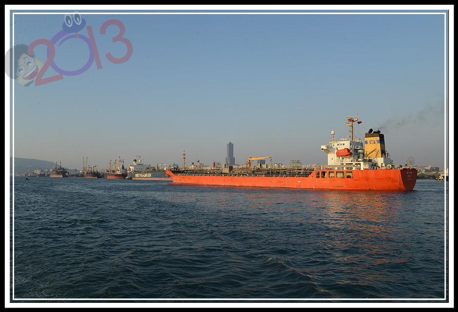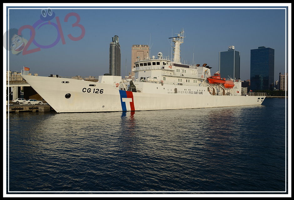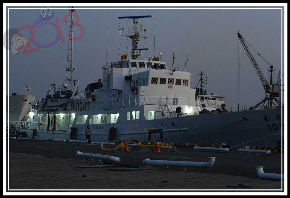 雪白的海巡艦艇,在迴船池,我們還遇見專門走金馬航線的大山輪,滿載著貨櫃往港外駛去。