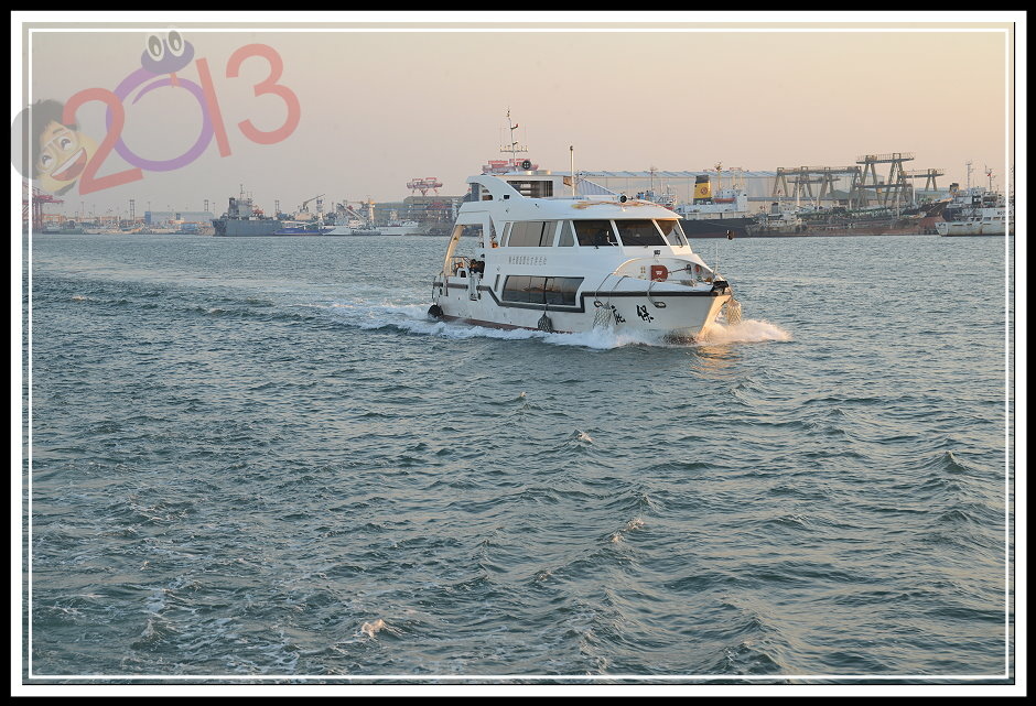 在港邊等了十來分,船是發動了,就是不開船,是要跟港務局報備確認後才開船嗎?船機聲音大,冒著獨有的黑煙...盼望著開船後海風可以吹散一點焦味。