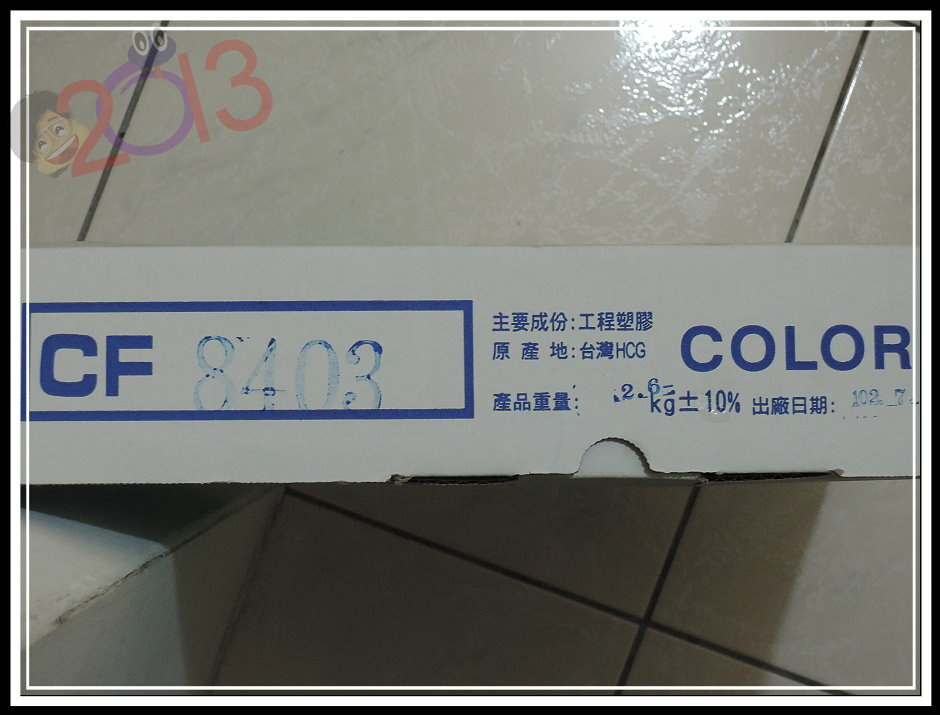 那天回家,我再度趴到馬桶上找著...我已經不止一次地找過,那裏只有像時鐘一樣的號碼銘刻而已。但他這麼說,我就姑且再試一次...咦...果然,不知道是角度對了...就在 HCG 英文字母下方還有一排字「CF8403」。