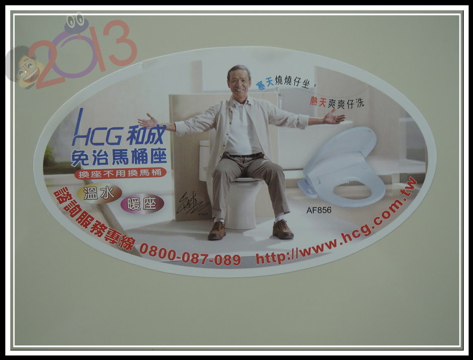 這馬桶事...一延宕就是一年多,每次上廁所都必須將移位的坐墊先喬回原來的位置,起身的時候還要避免座墊被肉黏起來掉進馬桶裡。每次看見劉德華在水箱上面對著我微笑...就不免怨念...別笑了!我就是這樣!