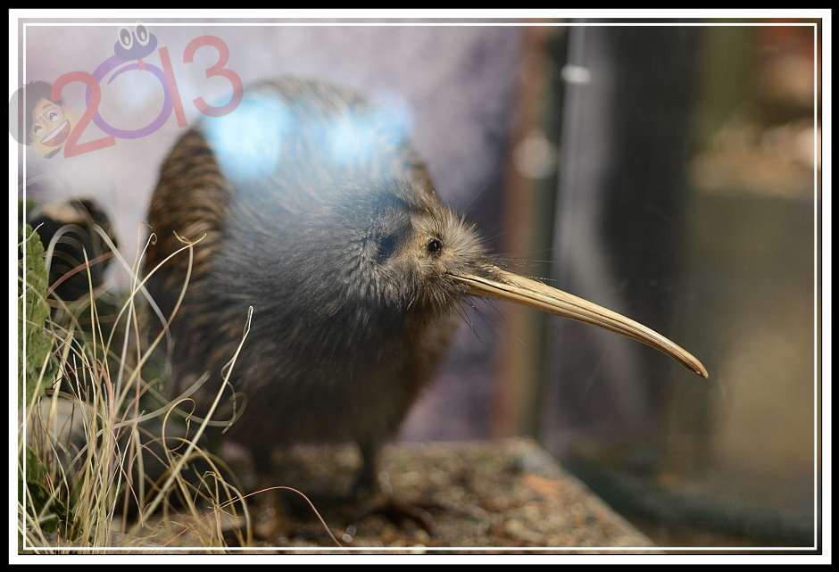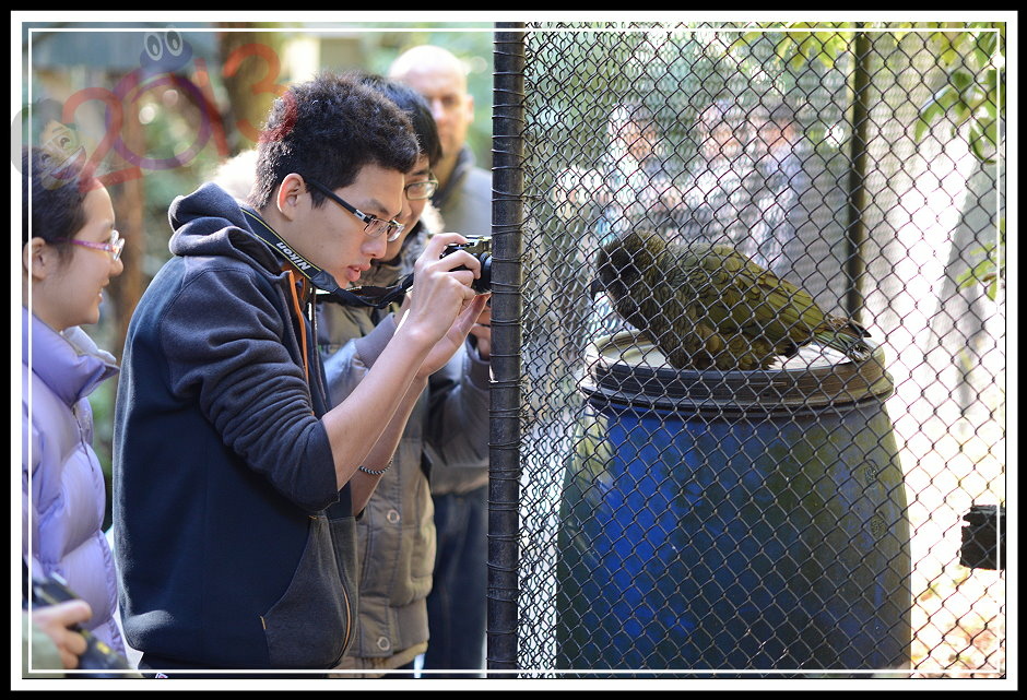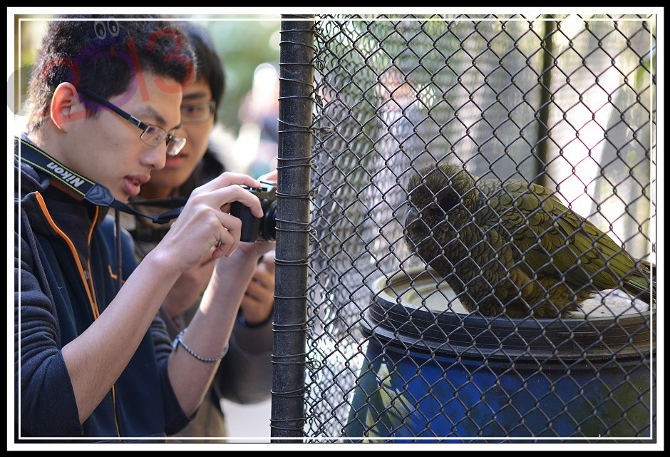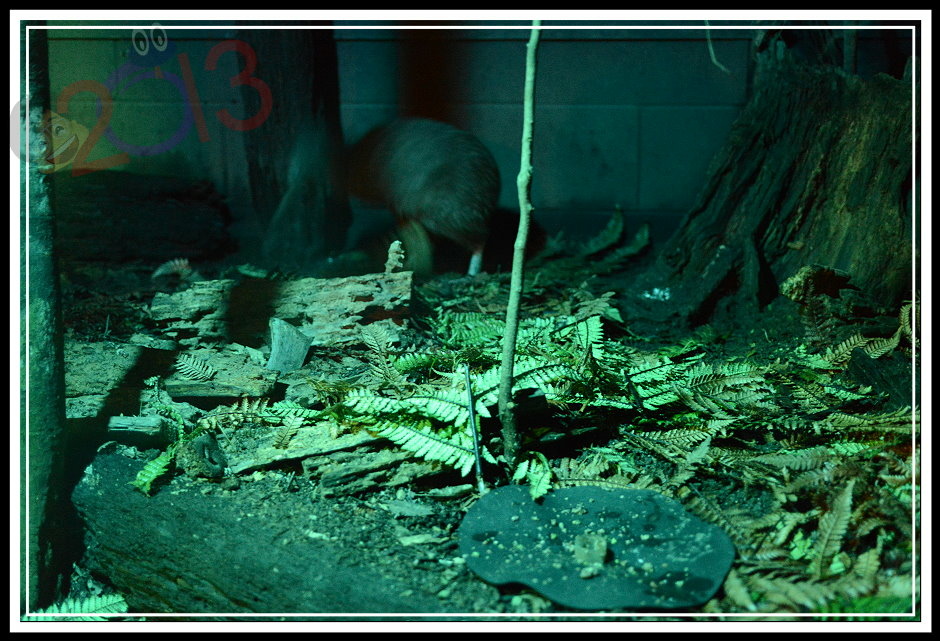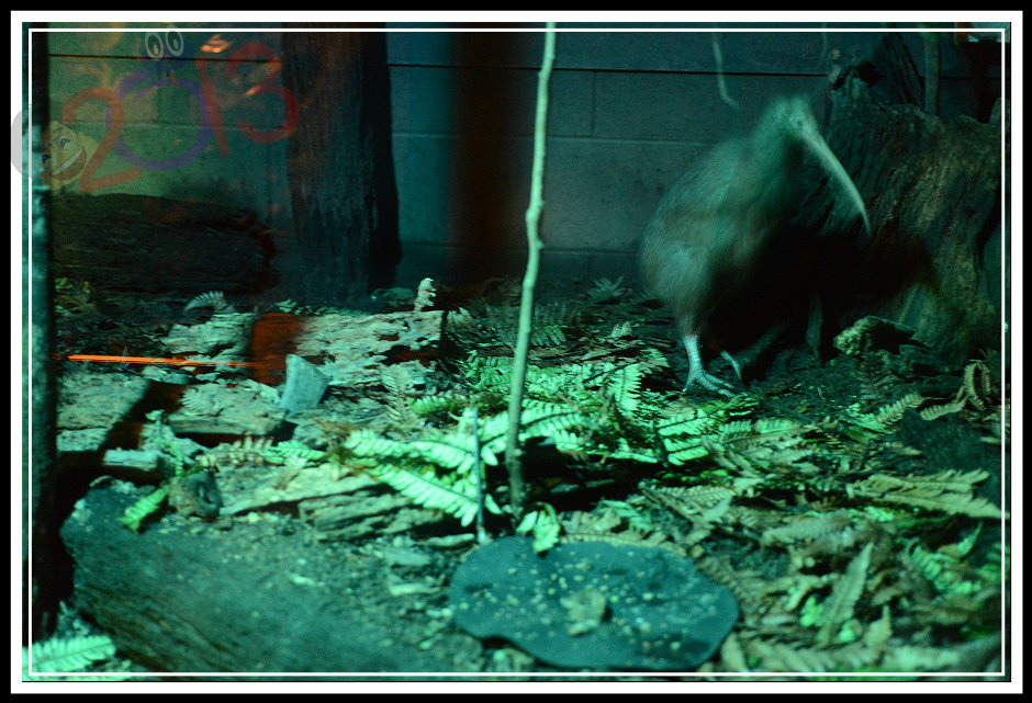 與台灣的動物園一樣,園區將供展示的 Kiwi 鳥放養在控制光亮的室內,參觀者穿過展覽廊道看見相關布置與標本之後才進到 Kiwi 鳥居住的房間。輕聲細語地隔著玻璃觀賞 kiwi 鳥。當然,絕對禁止使用閃光燈驚擾膽小的 Kiwi,其實隔著玻璃也只是閃出一片光花而已吧!這時候,我的單眼相機終於發揮性能,將感光度調到最高,站穩腳步...在解說員嚴格監督的眼光中勉強拍下幾張「活生生 Kiwi」的照片。