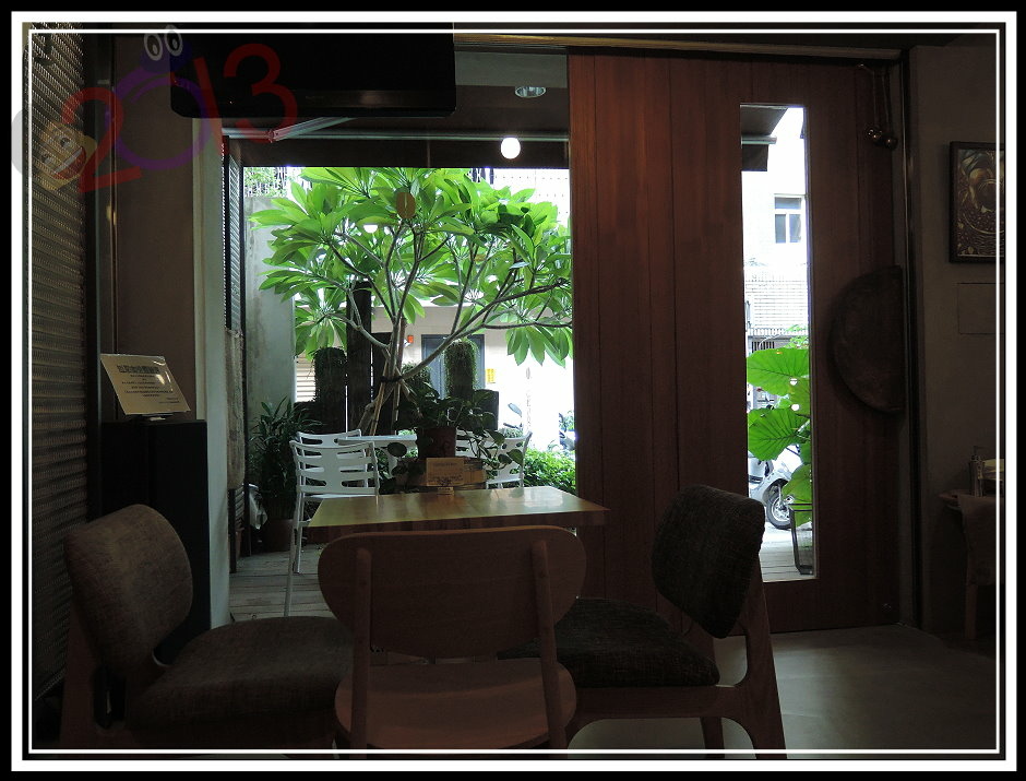 走在錦州街,大概不會想到要找到這家咖啡店還得再轉個彎進那條看似無尾巷的小路。招牌小、又拿一樓高的雞蛋花與姑婆芋遮掩,事實上需要蒐集正確的地理資訊,否則容易錯過。走進店裡,那兩叢綠卻又將店裡綠得令人不由得放鬆。