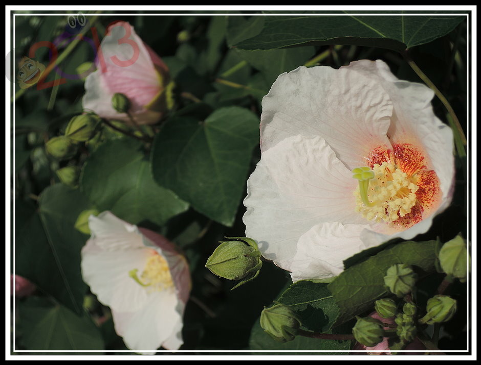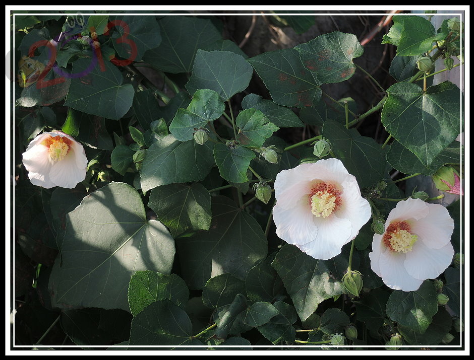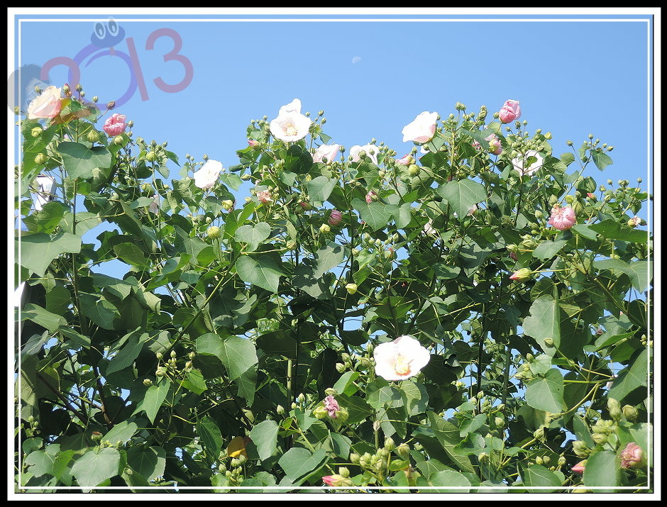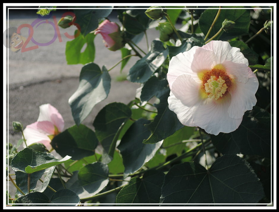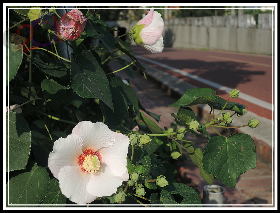 花才剛開...如果您湊巧也繞過附近,不妨放慢腳步欣賞一下,而且最好是早上陽光照得到的時候就來,千萬別想回程等等再找,少了太陽可就差一點點。如果...您身處遠地,那也可以留心周遭,應該島上的山芙蓉此時也都一齊在綻放。