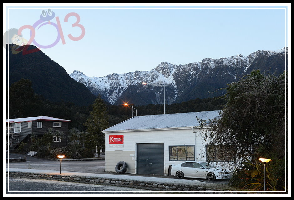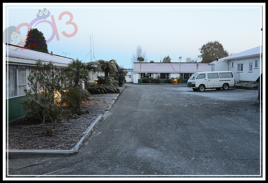清晨醒來,Fox Glacier 小鎮一別昨天傍晚陽光和煦的模樣,地面、植物、露天設施與車輛上無不凝結一層厚厚的冰霜。