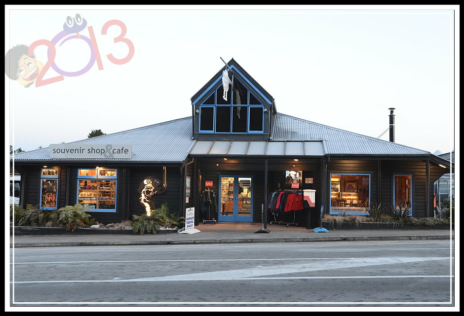 繞了一圈小鎮,想碰碰運氣...是不是可以找到郵局,將昨天準備好明信片在這名勝之地寄出。結果,小鎮不大,除了飯店外的主要道路,就僅有商店街後的幾戶住宅。而郵筒則依郵務公司分據主要道路的兩邊,而且位置就在飯店隔壁的禮品小店。而且小店兼賣咖啡,所以八點出頭天色猶昏暗不明就已經人聲鼎沸。除了旅客,也有不少當地的上班族...隔著玻璃,暖色的燈光看起來格外溫暖。