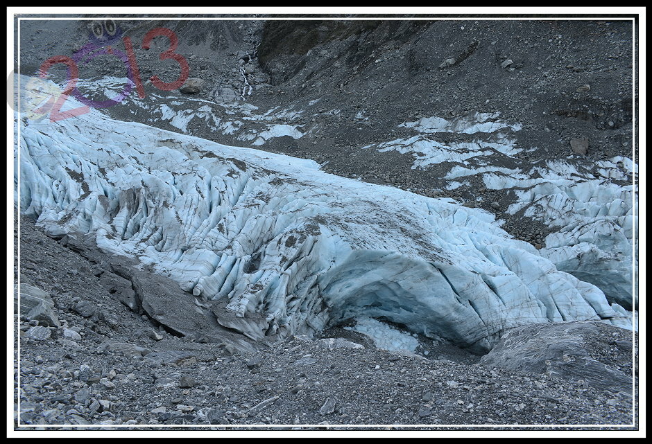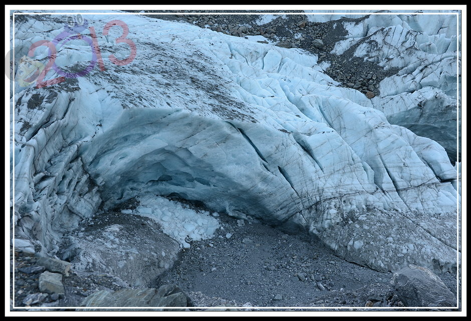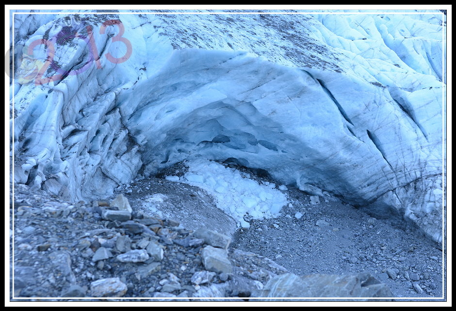 其實,冰河就在小鎮上方幾公里處...遊覽車不到半個鐘頭車程。沿途,路邊有著綠色標示...各年代冰河曾經到達的地點。據說,最早遠的年代,冰河由此綿延入海;而今因為氣候暖化,我們已經需要用標示來緬懷,且必須借助交通工具方能一親冰河之芳澤。