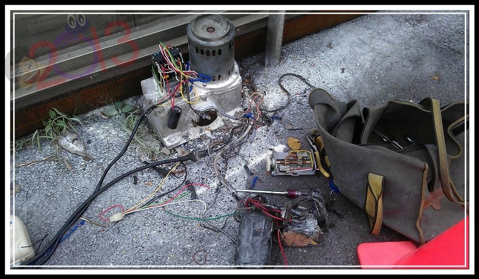 完全的賣方市場,平常故障頻仍,但東西堪用總是要修,這下子燒毀就全部換新,也請師傅該補齊的配件全部補齊。他出去備完料再回頭,迅速地將零件一一換新,看他接線的速度快得似乎不需思考,這才意會到「終於找到真正的高手」。也邊與他討論短路冒煙的原因,這幾天天氣熱,鐵門萬一「跌落馬」,馬達空轉太久產生高溫,自然電線的塑膠蒙皮容易被熔毀...他二話不說,在軌道上焊了根鐵條,抵銷鐵門前衝的慣性,還量了安全距離避免鐵門撞擊鐵條時影響馬達。不到一小時,多年的沉痾藥到病除。