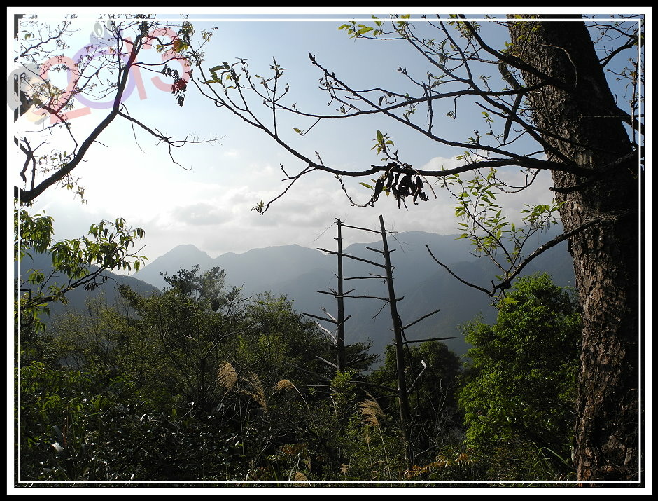 松樹媽媽身旁的東卯山,後方最遠處應該就是白毛山的稜線...可惜這個角度還不足以清晰辨認他。