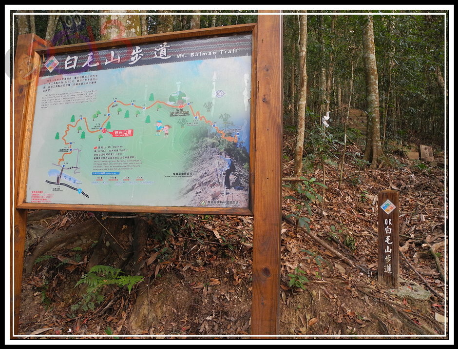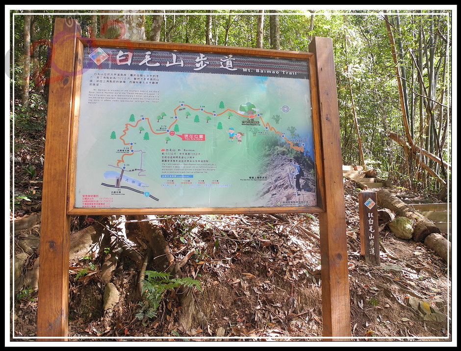 解說牌的路程標示從台八線旁白鹿吊橋橋頭起算,所以到此展望點為3.4K;步道旁的路程標示則由登山口起算,大約是過了0.5K與1K之間。