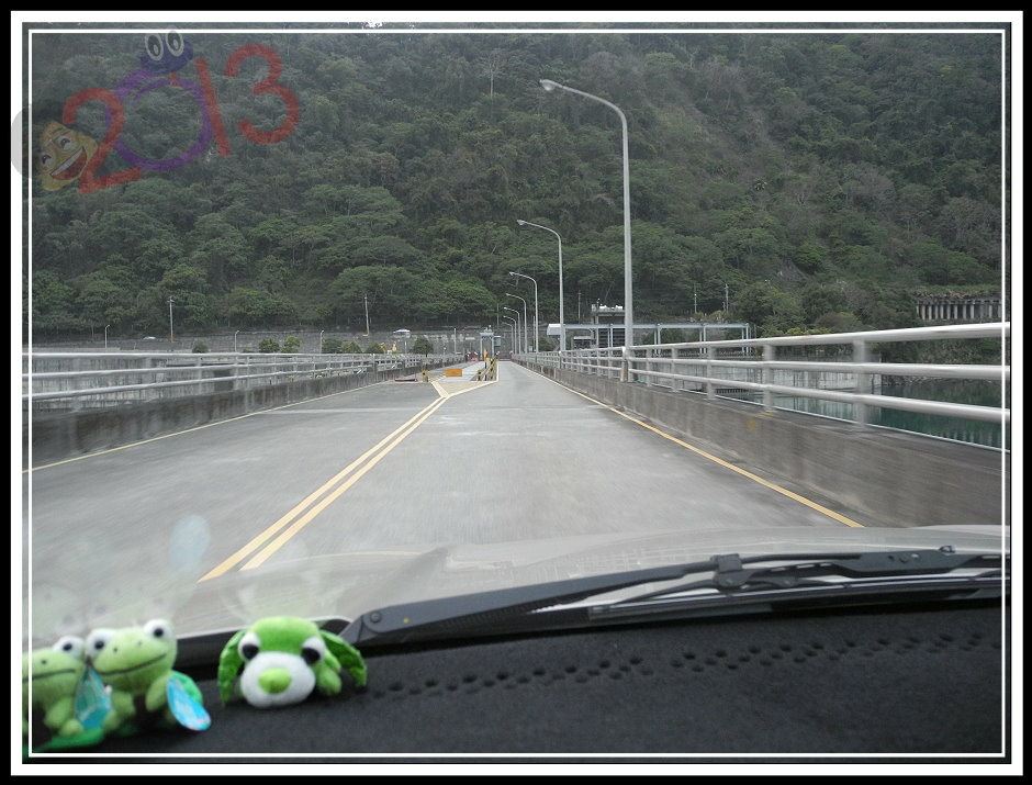 過了壩堤,左邊有路,不知道通往何方?下次可以探探。右邊有兩條路,沿著溪邊較寬闊的是堤頂道路,最終下到河床,問我為什麼知道?因為走錯路,所以前去探過路。靠山壁的小路湊巧是一部車子寬,沒有任何套價還價的餘裕,有些地方還被兩側的水泥護欄圈住,開車在上面連個噴嚏都不敢打,怕一不小心拉動方向盤,車門就會往水泥護欄招呼過去。