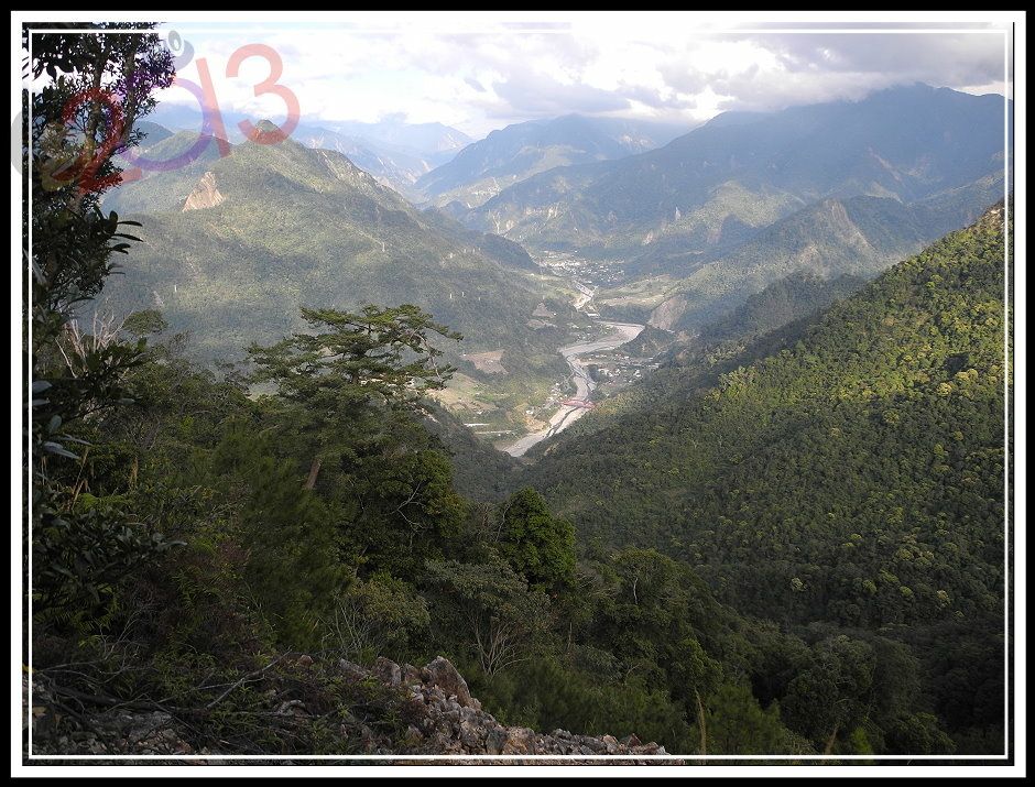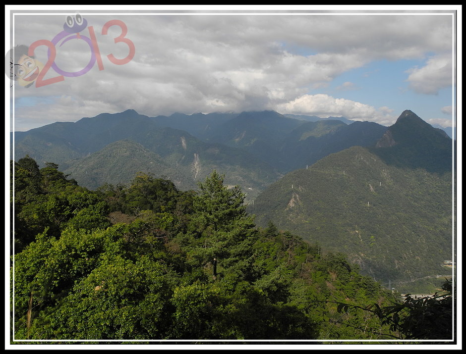 這是第一個展望點,可以看見瘦削的東卯山與谷關大道院,也可以沿著大甲溪細數兩岸的高山直到最裡面的大劍山,但是這天雲低,眾山門雖然還保有雄偉的量感,但少了崢嶸山頭,憑我的功力還是難以辨認。