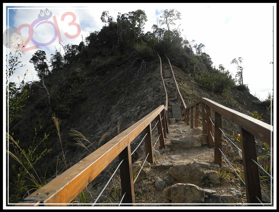 坐在涼亭上休息,沒有特別的興奮。因為登頂前壯闊的崩壁已經將心情推升到最高點。