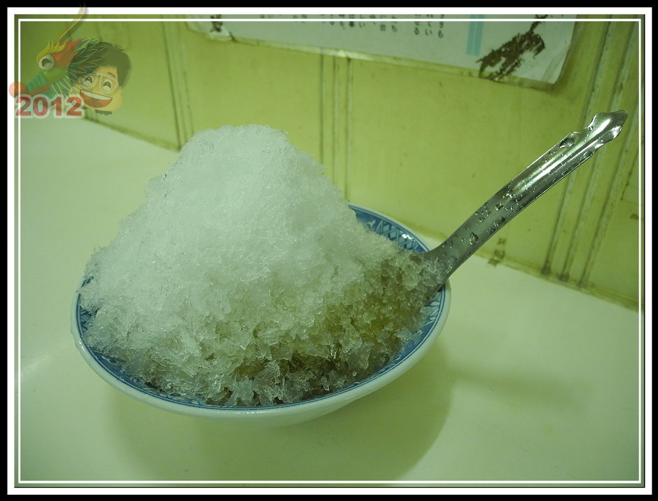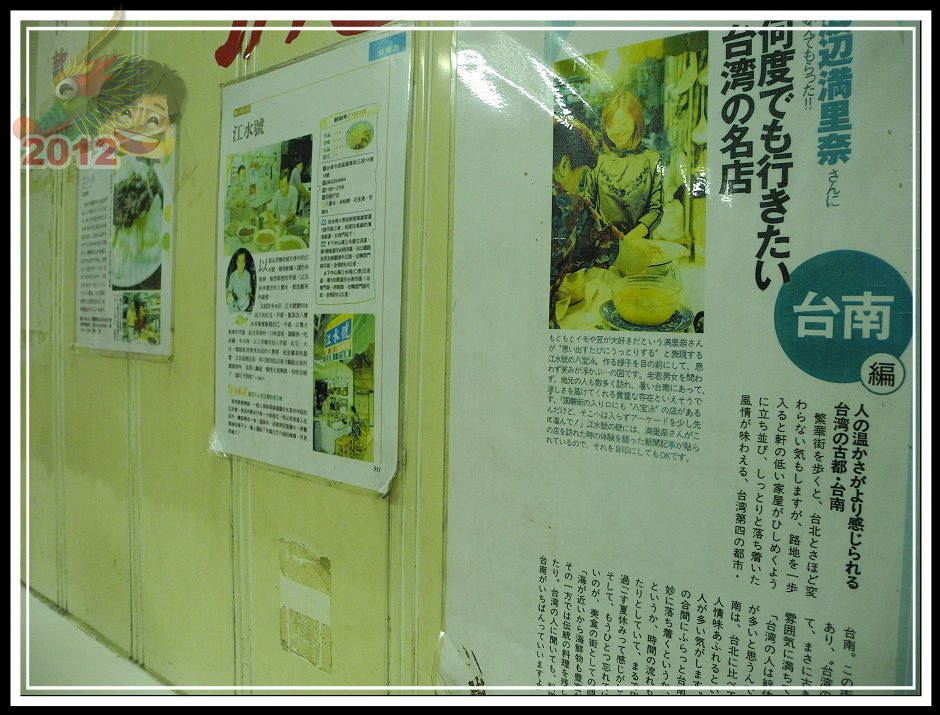 我愛吃紅豆牛奶冰、喜歡坐吧台...但...我還是坐到與吧檯隔牆,面前貼滿日本旅遊雜誌介紹江水號剪貼的座位上...