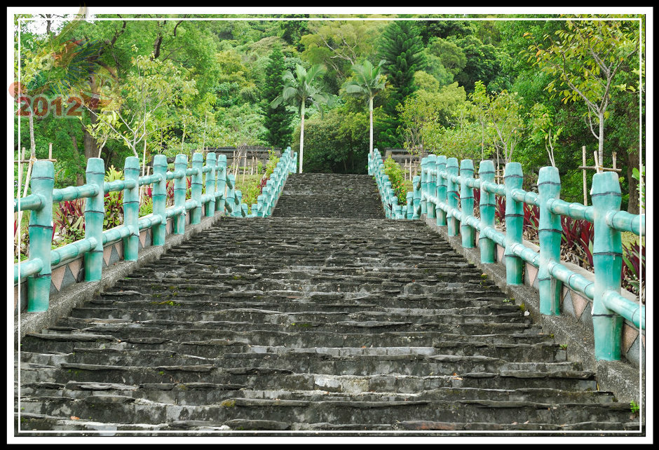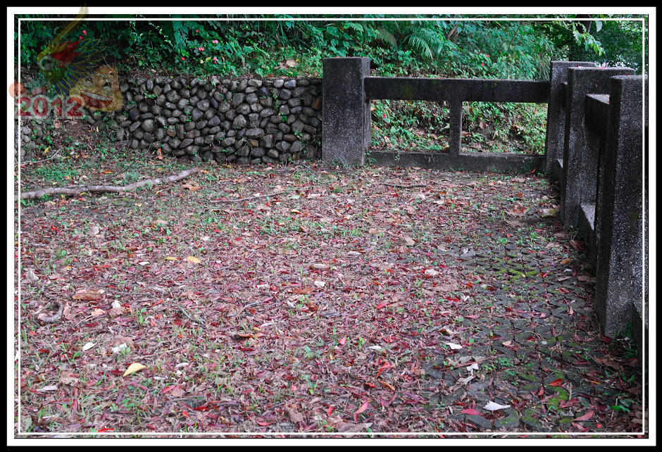 沿著溪邊的上坡路近來,一個大轉彎,第二處指標竟然躲在彎進部落後,眾多房子遮蔽的小路口,害我又回頭。左彎,穿過部落,在「上帝親吻的咖啡」旁終於找到神社的參拜道。參拜道被修整過,心裡本來充滿期待,想處在台灣的日本神社多半在光復後被拆除,期待在偏鄉能有個「被拆除不完全」的神社,甚至遺跡、周遭的石雕陳設都好。