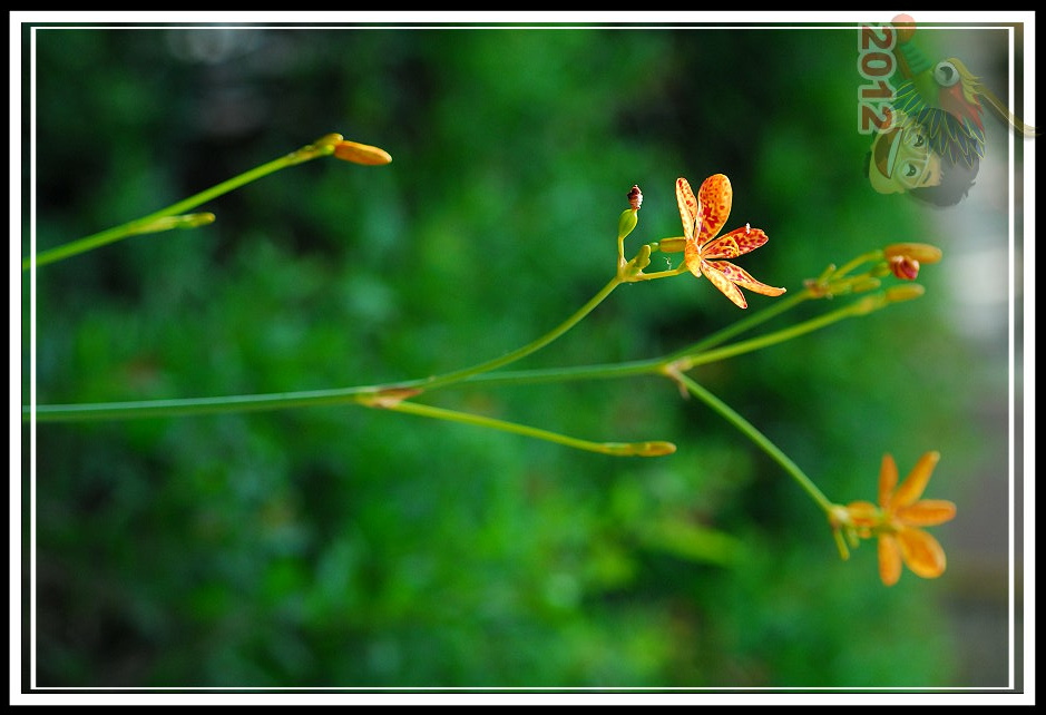 翻一翻部落格,射干走進生活是在2008年,不知不覺已幾度開花。射干生性強健,開春之後迅速竄長,端午時分開花,結出新果子,然後隨意拋撒黑色圓鼓鼓的種子,她就會如預期地擴張地盤。今年的射干開花了,雖然尚且零零星星,但已經成為花園的焦點。而且,射干除了在原有的地方開花,也在別人的地盤冒出新芽,看來如果不採取些防治的手段,不久這就變成射干園了。