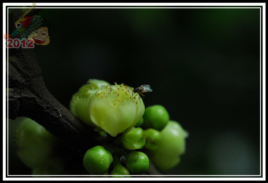 福木的花也很有昆蟲緣,招引蒼蠅、食蟲虻圍繞著飛舞。