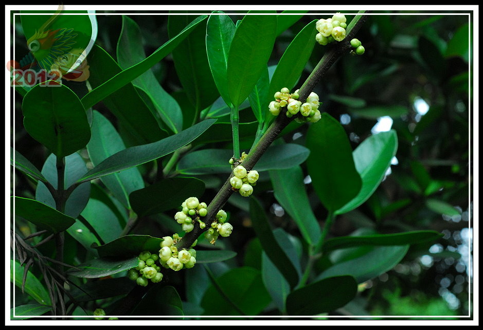 與福木相識是在結實累累的季節,滿樹黃澄澄像極了橘子,可惜它有毒不能吃。這幾天發現福木正開著圓滾滾的小白花,鼓著綠色小花苞與白花開滿枝條,渾圓飽滿給人家的第一印象就像它的名字一樣福泰。