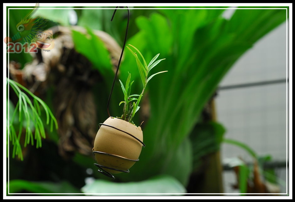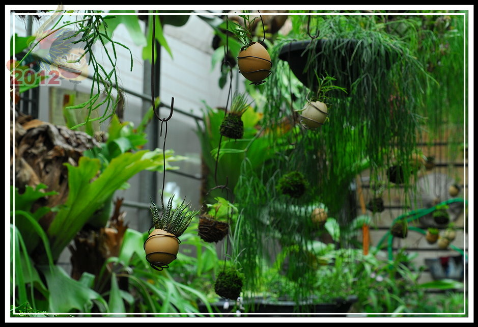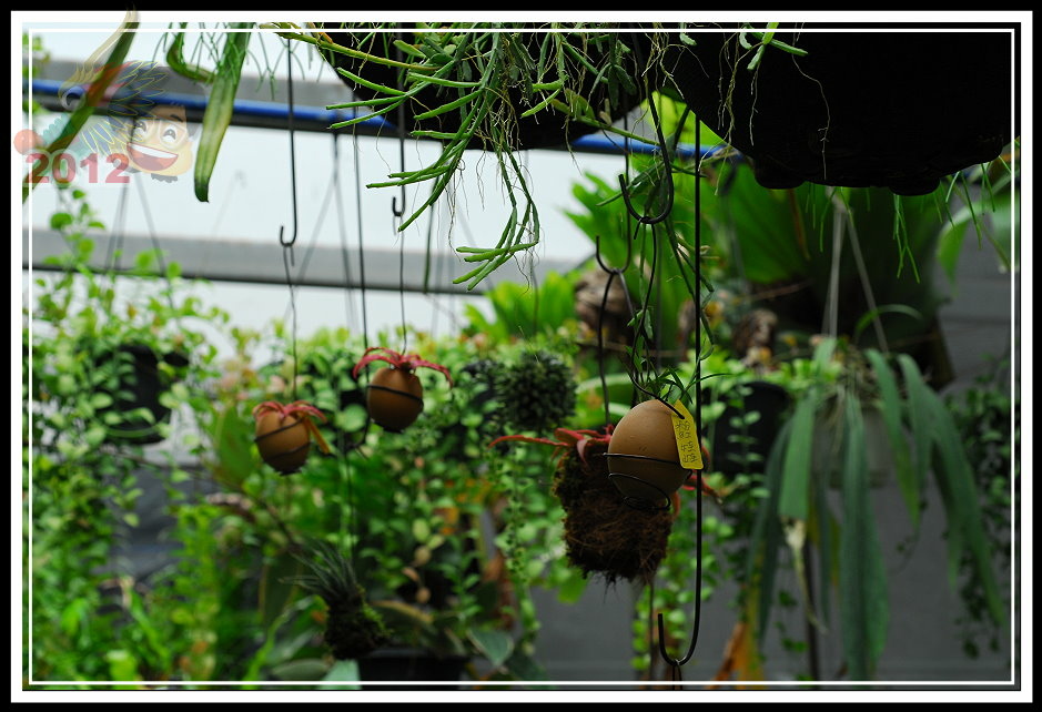 仔細觀察,架上小盆栽品種並不特殊,一路下來總在幾家店可以發覺相似的商品,但在這裡...每一盆都被細心的打理,少一分失了趣味,多一分則多了庸俗。挖空蛋殼,再用雕琢盆景的鋁線一層一層圈繞,裡面種上蘭花、多肉植物,竟然趣味洋溢。