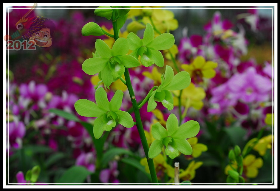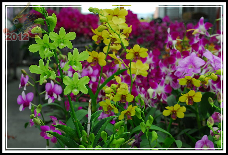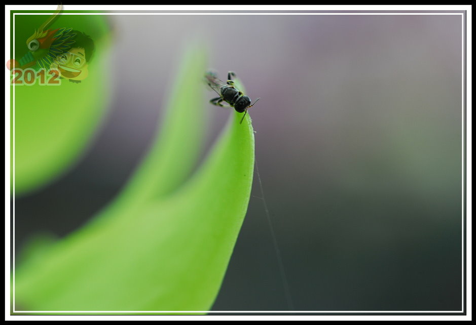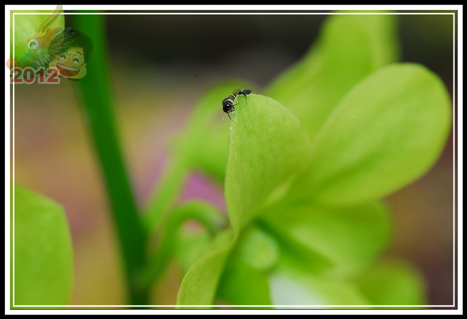 逛完整間賣場終於選定兩棵素雅的石斛蘭,正在等店員包裝,忽然發現蘭花上有異狀...一隻小小的「蜂」正啃蝕著蘭花,而且顯然搭的體積夠小,在五顏六色之中雖然囂張地就站在最高的花上緣,店員還是沒有發現。我哪能放過如此「美景」,拿著微距鏡頭就對著花朵猛拍,邊拍心裡邊想...待會兒拍完,該不該告訴店員...「有人偷花」呢?