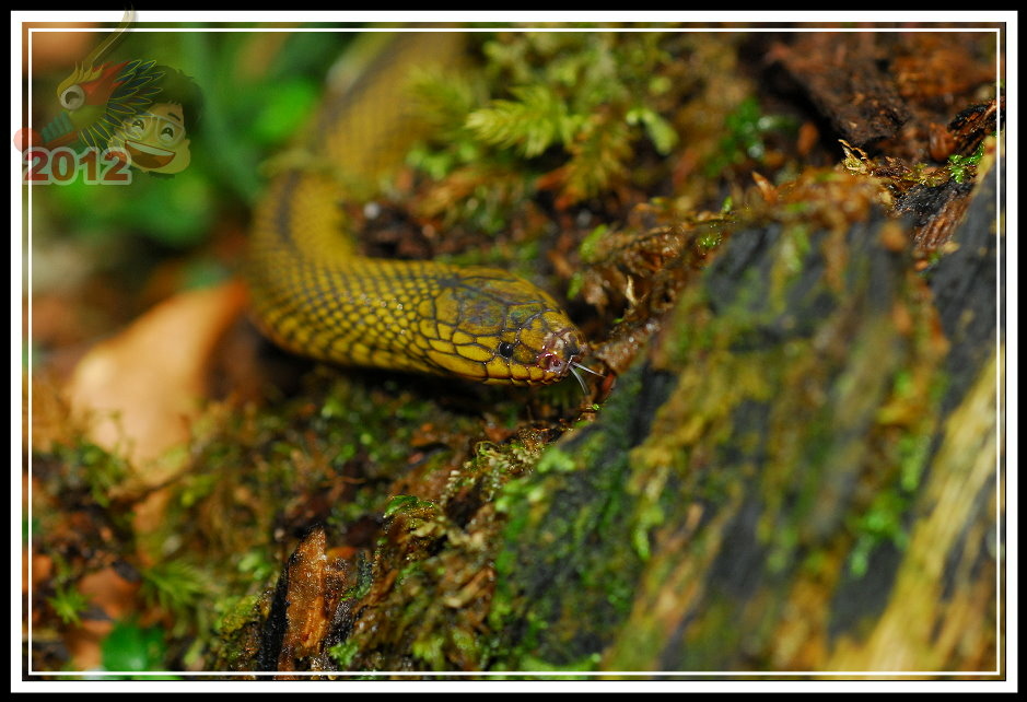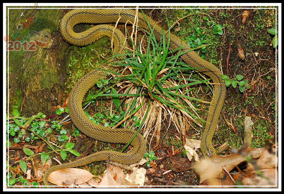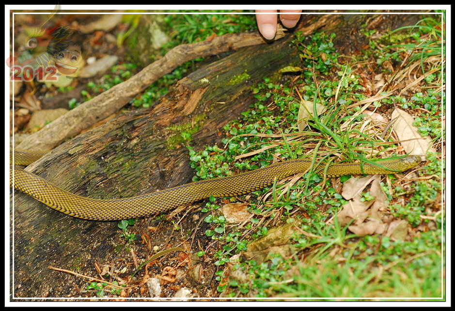 擺弄他拍照姿勢過程中,發現台灣標蛇非常溫馴,沒有一般蛇類張牙舞爪反撲的動作。最後索性將樹枝丟去,徒手由尾部輕輕地移動他。偶爾,還趴到地面擋在他正前方拍吐信的模樣...真是蛇類少有的好脾氣。