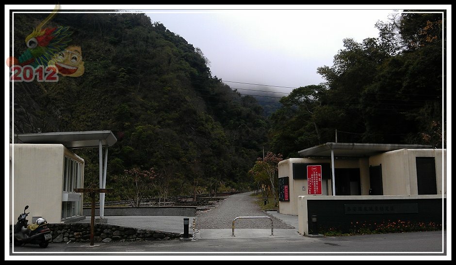 從豐原到泰安要將近一個鐘頭車程,湊巧鋒面來襲,過了大安溪就被雲壓得頭低低的趕路。過了清安豆腐街,在警光山莊前的大停車場停車,一看見這石頭路,就想起十來年前瘋青蛙,半夜泡完溫泉就拿著手電筒沿溪谷找台北樹蛙,關了燈,月亮還可以照亮路,人臉清晰可見,那時候倒不知道有「虎山」可以爬。那年來,高灘地被水沖得亂七八糟;時隔多年,路不僅修好,還設了門房、廁所...。朋友來過,手沿著溪谷一飄「虎山就在那兒!」順著方向看過去,哪有山?白雲壓住山頭,只見山腰...看起來不高,應該去去就回來,只是氣溫低,多帶件外套預備攻頂風大的時候禦寒。