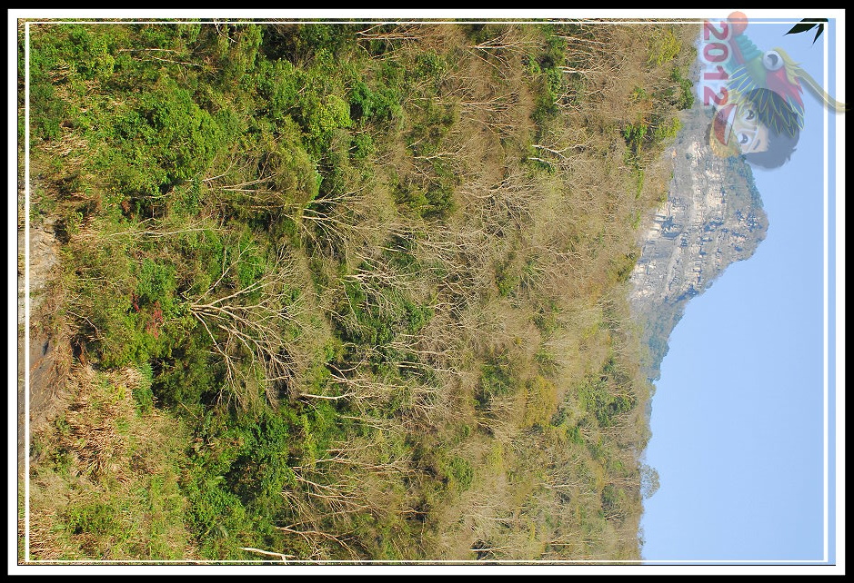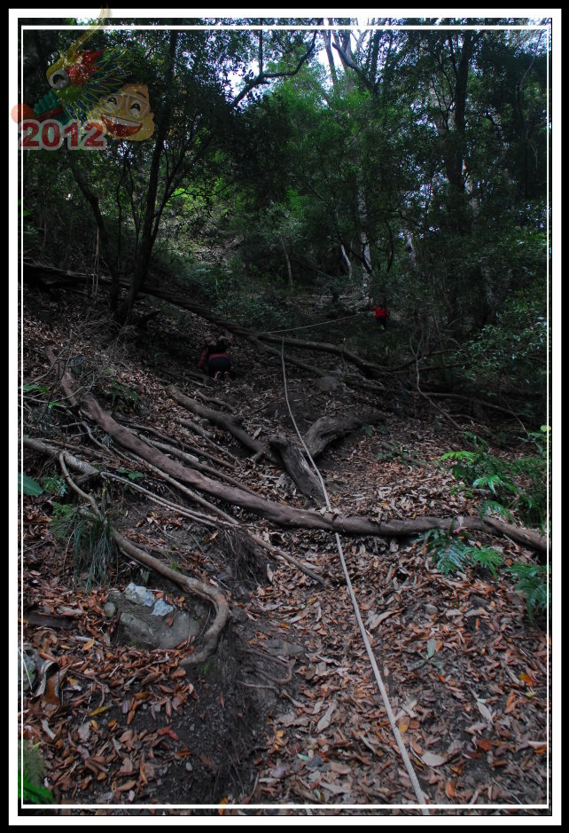 稍事休息,又花了一個半鐘頭回到登山口。其實,下山也沒輕鬆過上山,上山四肢並用;下山則五點著地,再加上臀部了。幸好,輔助繩子綁得好,否則有些路段還真要連滾帶爬啦!