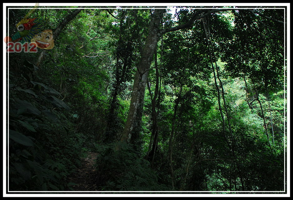 然後,路開始不安分地扭曲起來...出發一個半鐘頭後,在小山澗旁邊,路抬頭挺胸起來,人卻趴下來...手腳並用地爬。網路上說:有三分之一的路程陡峭...但怎麼覺得爬也爬不完!