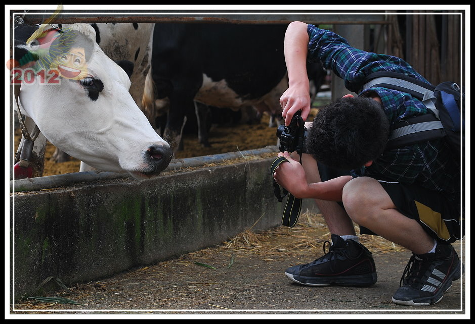 我有興趣的卻是牛棚裡集中管理的乳牛們,拿起明信片...開始在標著「遊客止步」的區域畫牛...直到,管理員前來關切:問我記錄些什麼?當我揮一揮手中已經長出兩頭牛的明信片,他才轉身將鐵欄杆關上,順口含糊地說:「要出去的時候自己關門」。