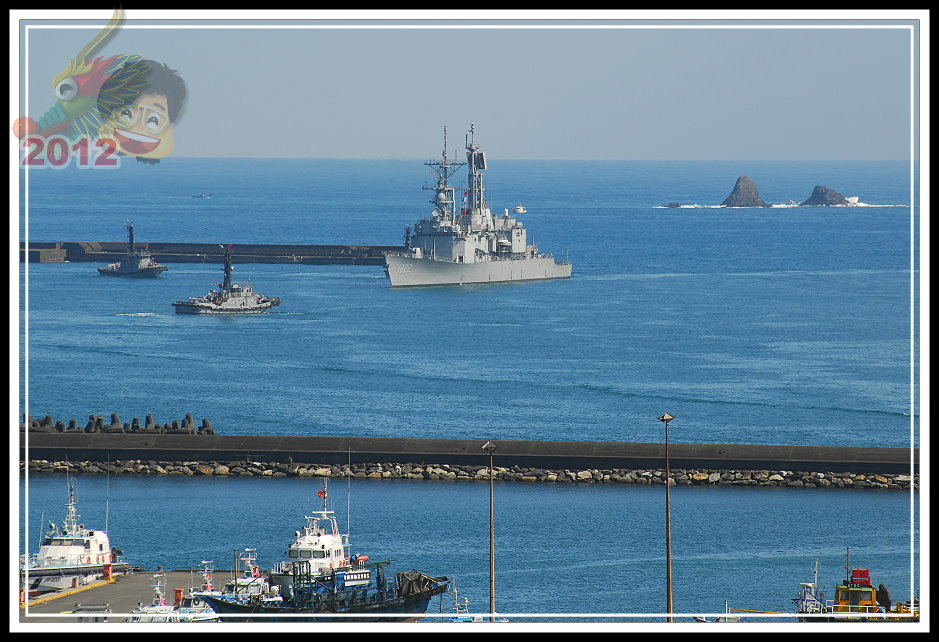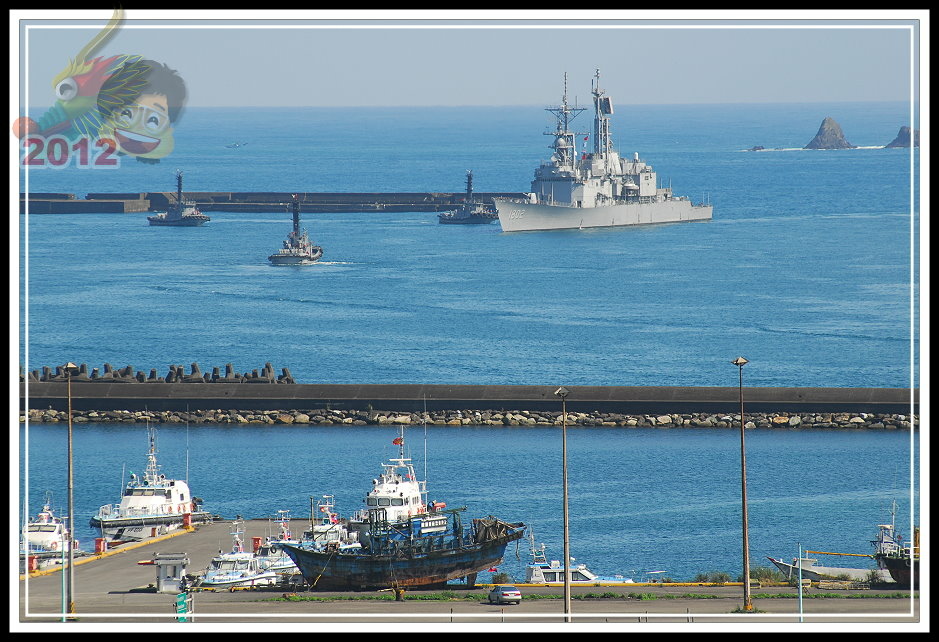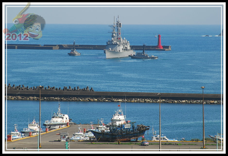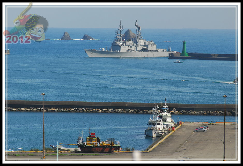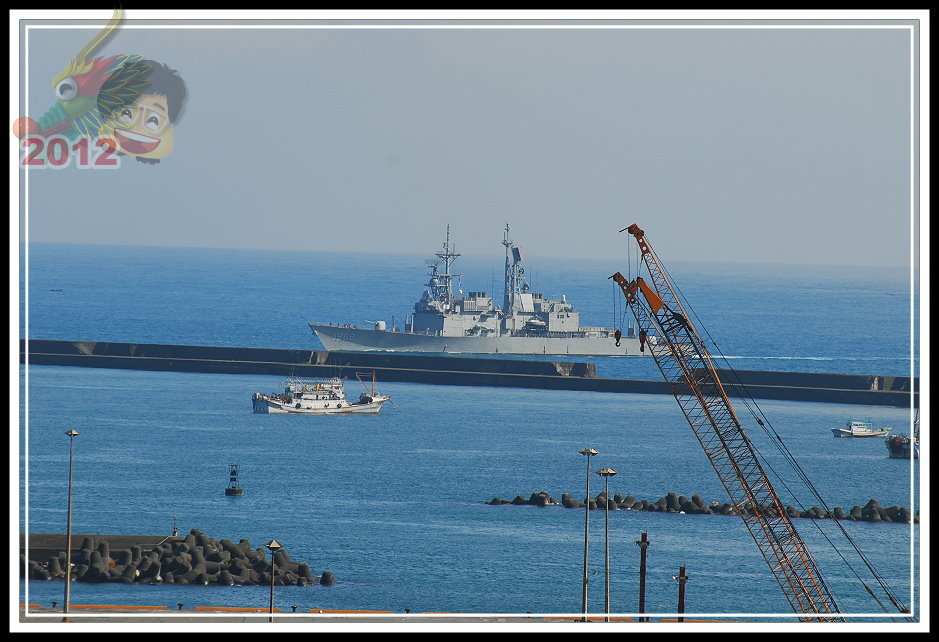被擋在南方澳接省道的叉路口那一小時裡,逛了漁港,其實也站在馬路上觀賞軍艦入港。遠遠地見一艘小軍艦繞個大彎對準港口直衝過來,直到堤防邊才發現這不是小軍艦,而是台灣最有戰力的紀德艦。繞過小山,他放慢速度,漸漸進入港口,同時有幾艘小漁船不相讓地從另一個方向搶入港,惹得軍艦猛拉汽笛。僅入迴船池,拖船立刻蜂擁而上,幫龐然大物掉轉船頭,稍俟逗留後又出港,跟我們一起沿著蘇花公路而行。只是我被擋在管制哨前面,他卻破浪無阻。忽然有個念頭,要是也有一艘小船,是不是就可以不需要理會施工、坍方...天氣允許就出港...那台灣沿海真要任我遨遊。