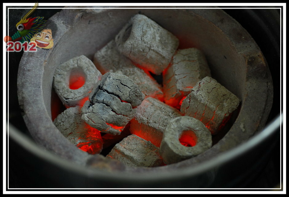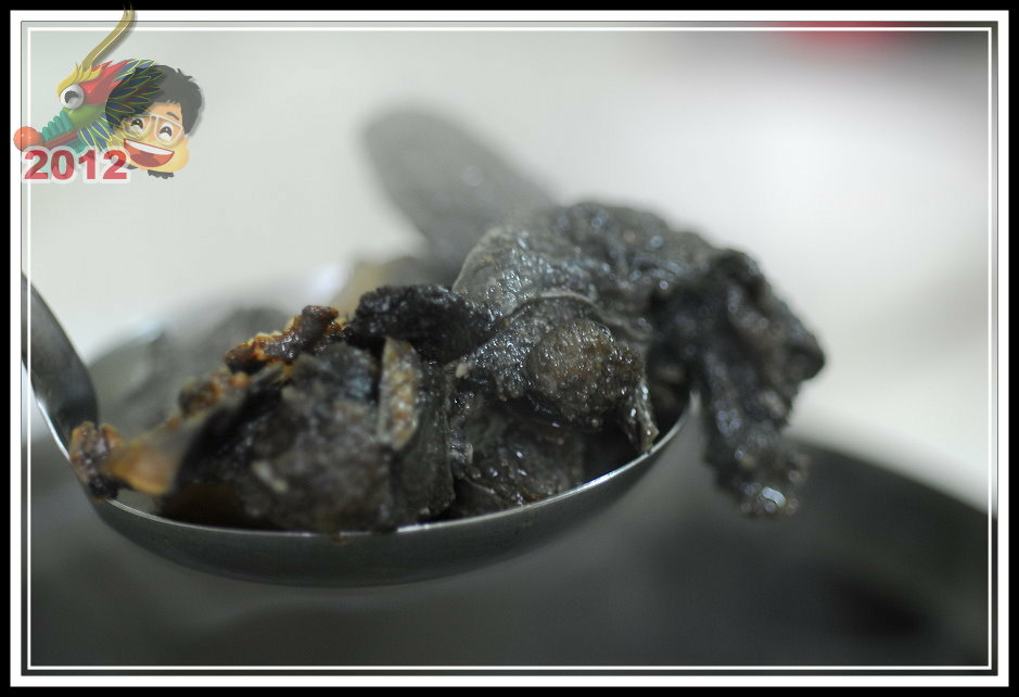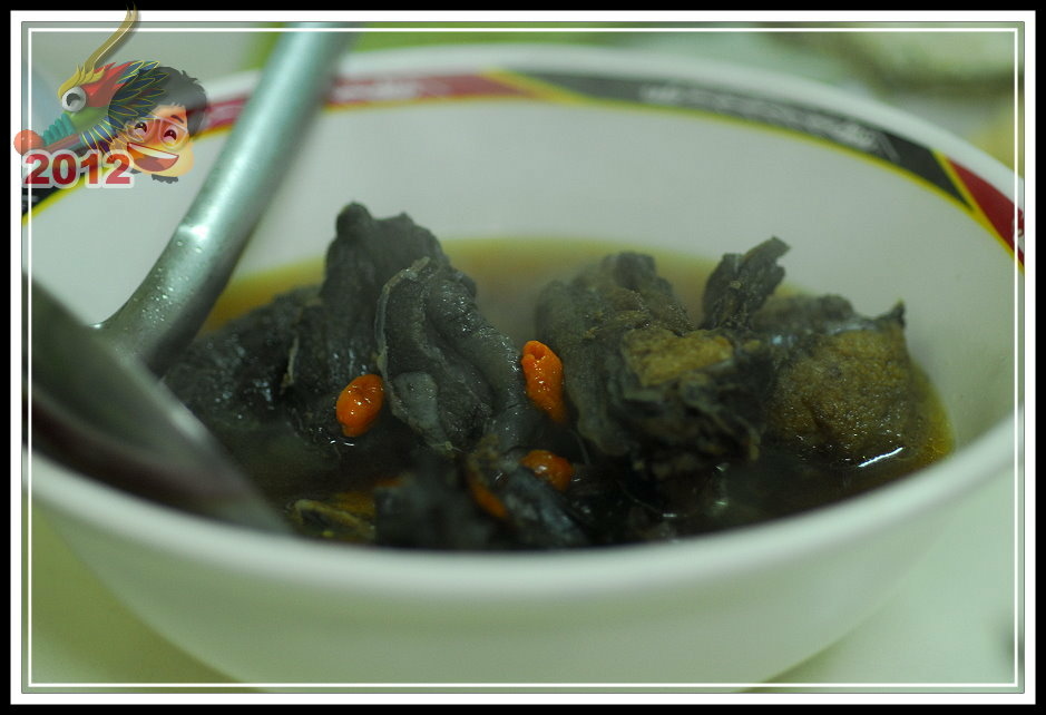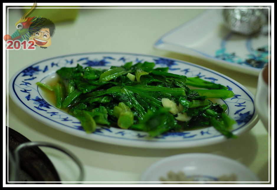 主菜是陶甕裝的燒酒雞,全酒滾烏骨雞,撒上枸杞,呼嚕呼嚕滾著滾著身體就跟著暖和起來。剛開始點了半鍋,很快地又再追加半鍋,老闆把整鍋端進廚房,一會兒酒氣沖天地邊冒煙邊喊「燒喔!」地將陶鍋又放上餐桌中間的木炭火盆上。而鄰桌為了怕酒濃,索性點燃了鍋裡酒精,我偷偷地數了一下,火興旺地燒了五、六分鐘還不熄滅,難怪幾碗湯下去,開始令人有微醺的感覺。