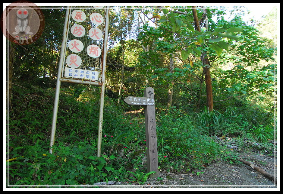 登山口容易找,沿著台八線中橫公路,過麗陽營區後,左手邊就可以看見「十文巷」路標,路標下有褐色的屋我尾山指標。雖然被「瘋泰雅、泡谷關」的觀光大旗遮掩,愛山的人總是可以嗅到該追尋的味道。