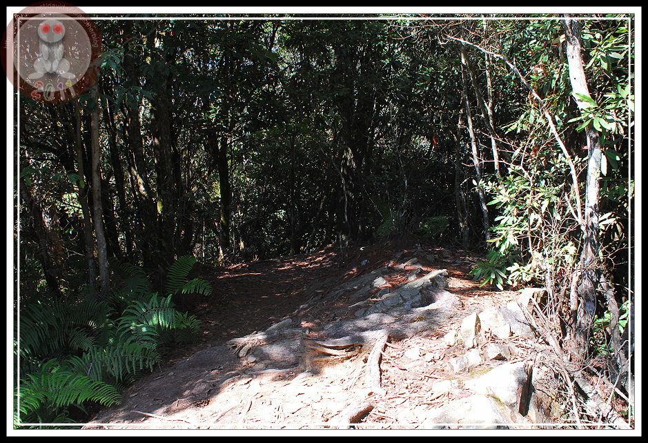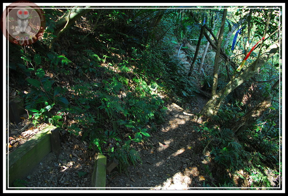 站在登山指示牌旁,一條筆直的步道就漸漸地彎上去,只隱沒到樹林子裡。上山,斜陡的路不難走;後來下山,才發現「好戲在後頭」。