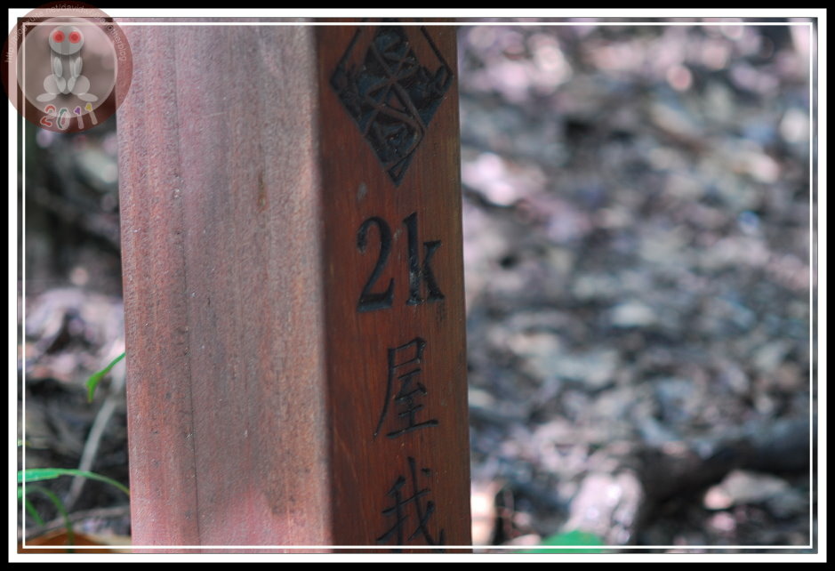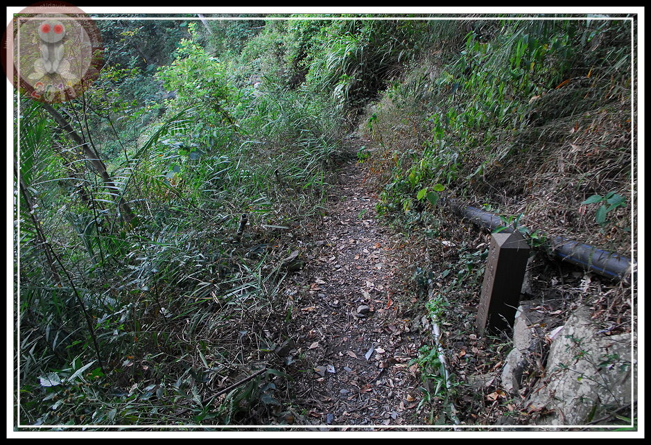 若不是偶爾會遇見屋我尾山步道的里程碑,還真會讓人以為誤闖了森林且迷失方向...9:04...終於看見0.5K里程碑。他孤伶伶地與眾水管為伍。