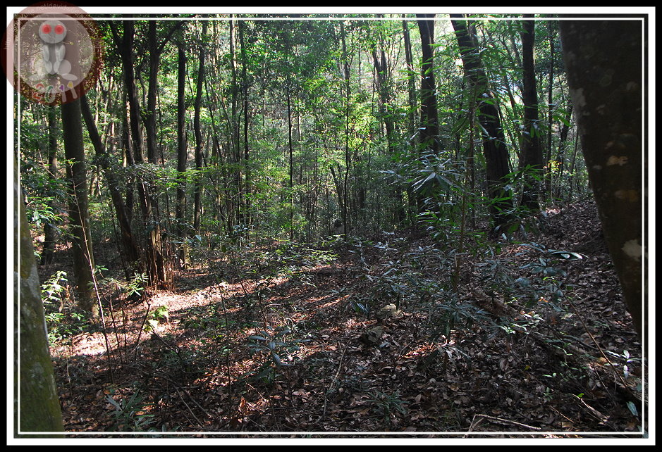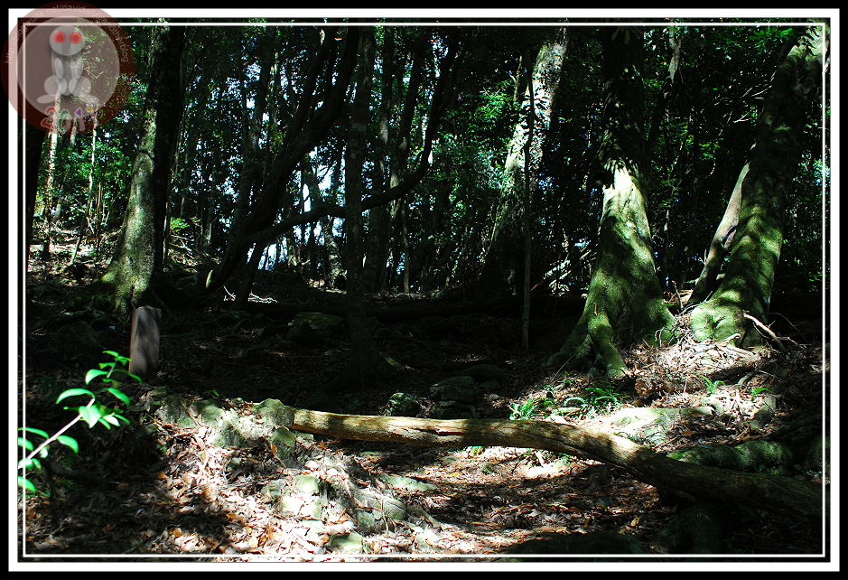 越高,視野越佳...,只是屋我尾山的一路上似乎沒有絕佳的展望點,樹林茂密地擋去烈日,同時卻也遮蔽了群山。