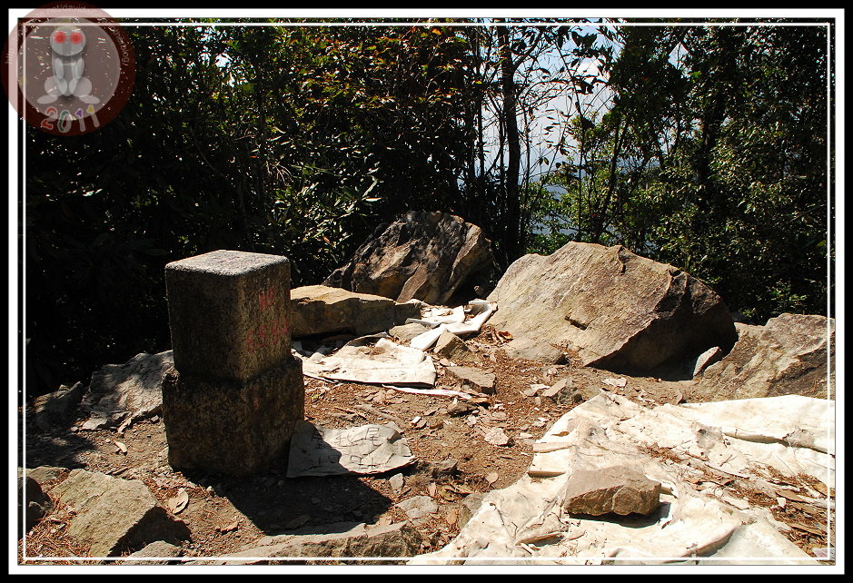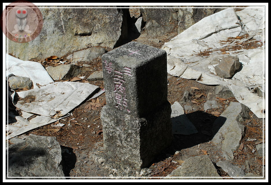 終於...行百里、半九十...走過3.7K,離三角點還有100M,至少指標是這麼說的。只是,這一趟路程覺得設指標的人不知道是好心激勵大家的士氣,還是呼嚨一氣,似乎100公尺特別遙遠,而且怎走了許久...還有100公尺。