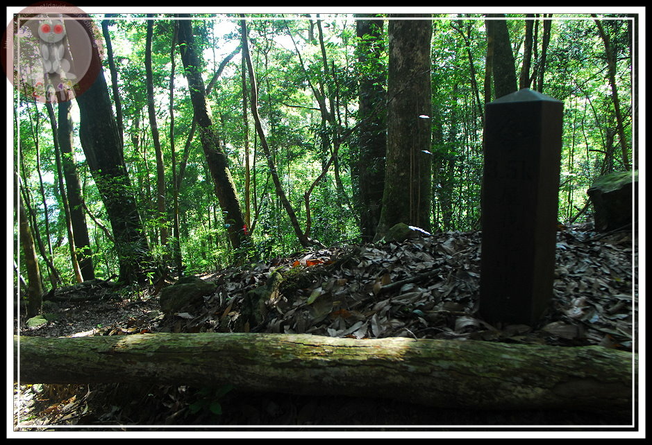 好玩的是...應該是怕民眾誤入軍事重地,林務局竟然隔 200公尺就設一座指示牌...6分鐘走完兩百公尺,3.4K要花多少時間...當然純理論計算很容易,如果加上地形劇烈變化的限制,體力消耗殆盡...可能500公尺都必須奮戰許久。