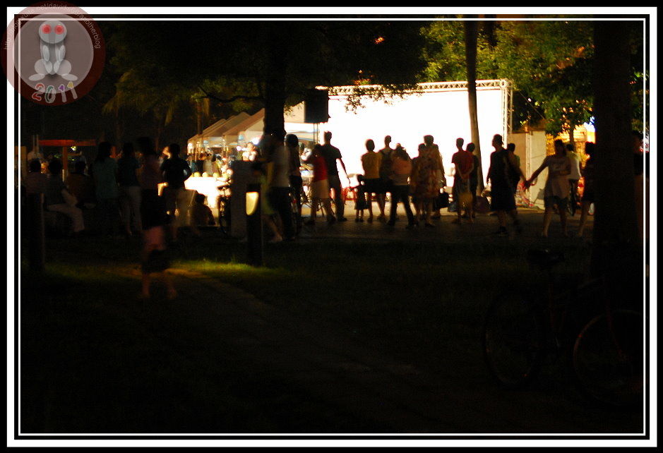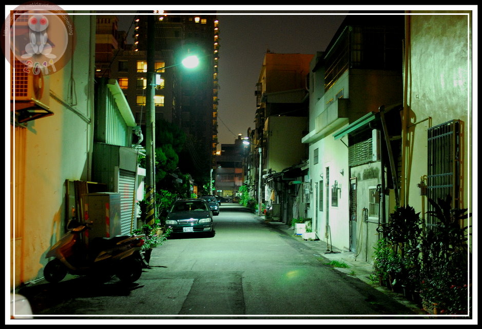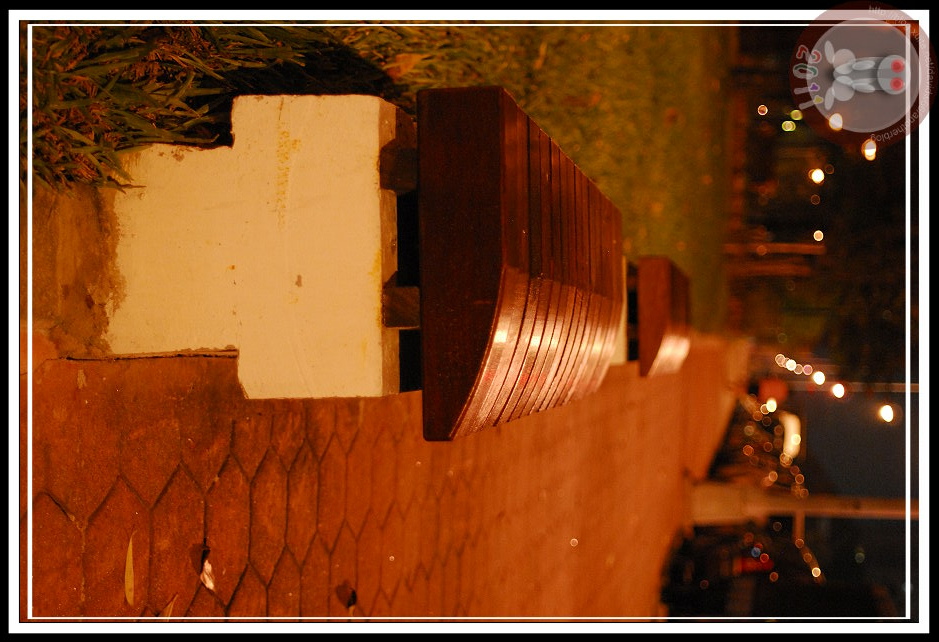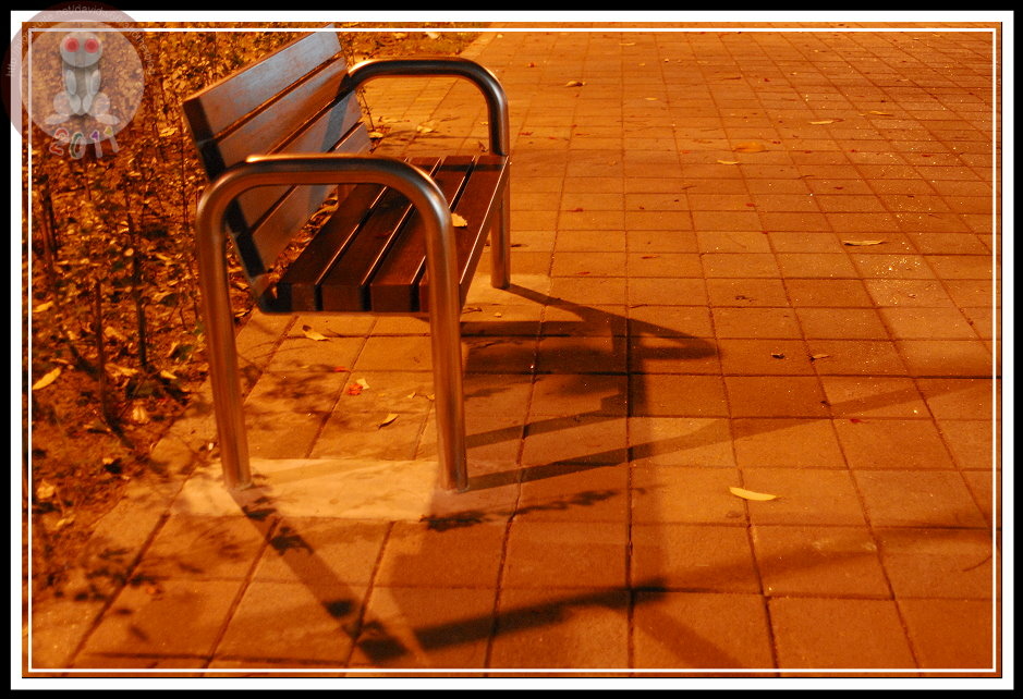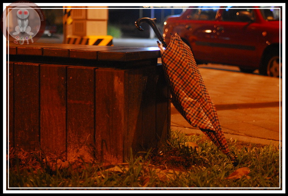 中秋夜前夕,台中市街頭的人車稀稀落落,據說...市區的綠地不容許「烤肉」活動,於是比「縣民」不幸運的「市民」們都蹲在自家騎樓的馬路邊燒烤。不過,慶幸有這樣的規定,我才在夜裡有一點「閒晃」的地方。還在適應階段,被工作包圍,按快門的食指似乎都生鏽卡住,就一條短短的綠帶解解饞。夜裡,一把傘斜倚在椅子邊上,是誰忘了?急著回家烤肉嗎?還是...等著我的鏡頭?