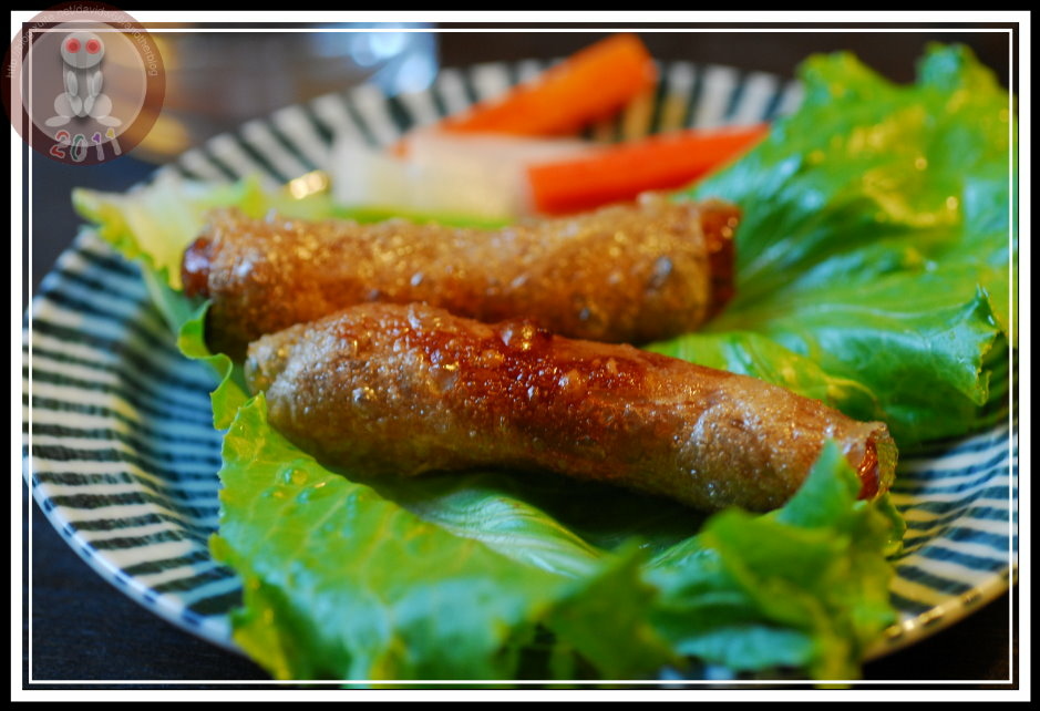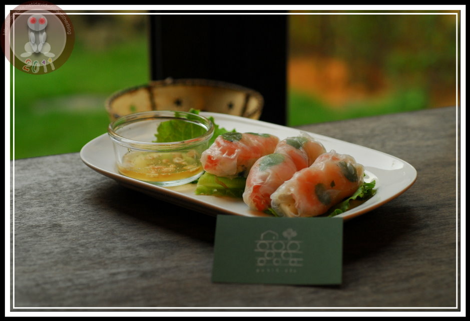 另外,我們單點「鮮蝦雞絲生春捲」,不同於酥脆的春捲,除了鮮蝦、雞絲的好滋味,還可以咬到河粉外皮的Q彈。入口之前,我將生春捲推到桌邊窗戶下面,湊巧配一點窗外的昏黃的綠意,美得實在想就此放著擺飾。