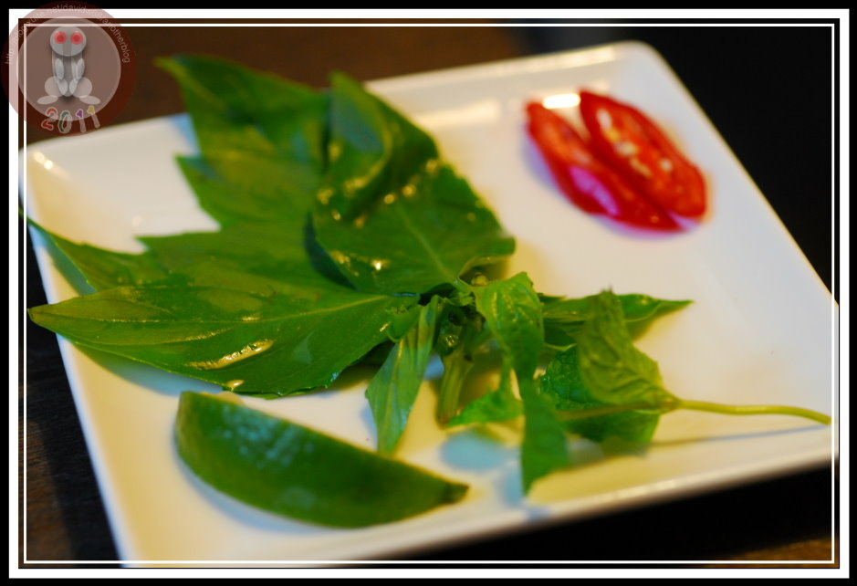 牛肉河粉份量剛剛好,用了洋蔥、豆芽菜當配料,湯頭味道畢竟是台灣 人掌廚,有台灣牛肉麵的傳統;加了越南河粉,倒是有另外的清爽,讓我忍不住雙手捧起湯碗喝完每一滴。隨著河粉,老闆娘用小碟洗淨了九層塔、薄荷、檸檬片、辣椒讓客人隨意掺加,不同葉子提供不同的香氣佐味,甚是好玩。